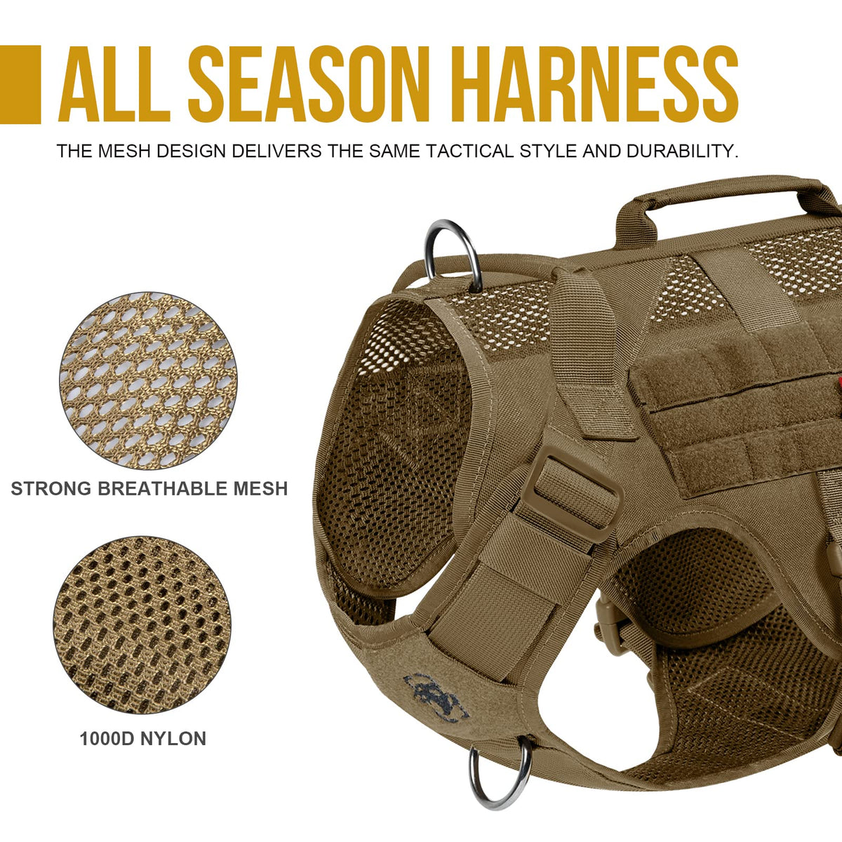 Onetigris No Pull Tactical Dog Harness, He Aire K9 Mesh Harness Is A Bliss For Muddy Spring Days And Hot Summer Walks. With The Same Tactical Style And Durability As Our Other K9 Gear On The Shelf, This One Offers Great Ventilation Through Sturdy 1000D Nylon And Mesh Fabric, Is Easy To Clean And Quick To Dry. There Are 2 Padded Handles With Reinforced Stitching At The Top, One Horizontal And One Vertical, Useful For Getting In/Out Of A Car, Maneuvering Your Pup Away From Trouble, Or For Training Sessions. Youll Find 3 Leash Clips At The Front Chest And Along The Back To Cater To Different Needs And Occasions Such As No-Pull Training, Hikes With Long Exploration Leashes, And Regular Daily Walks. And Of Course, We Wouldnt Leave Out The Tactical Touch Of Molle Compatible Patch Panels On The Sides For Modular Attachment Of Add-Ons And For Personalization With Morale Patches And Name Tags. This Is An Air-Light Yet Powerful Piece Of Kit For Adventures And Everyday Use.