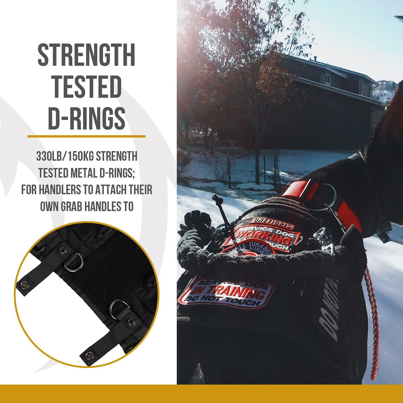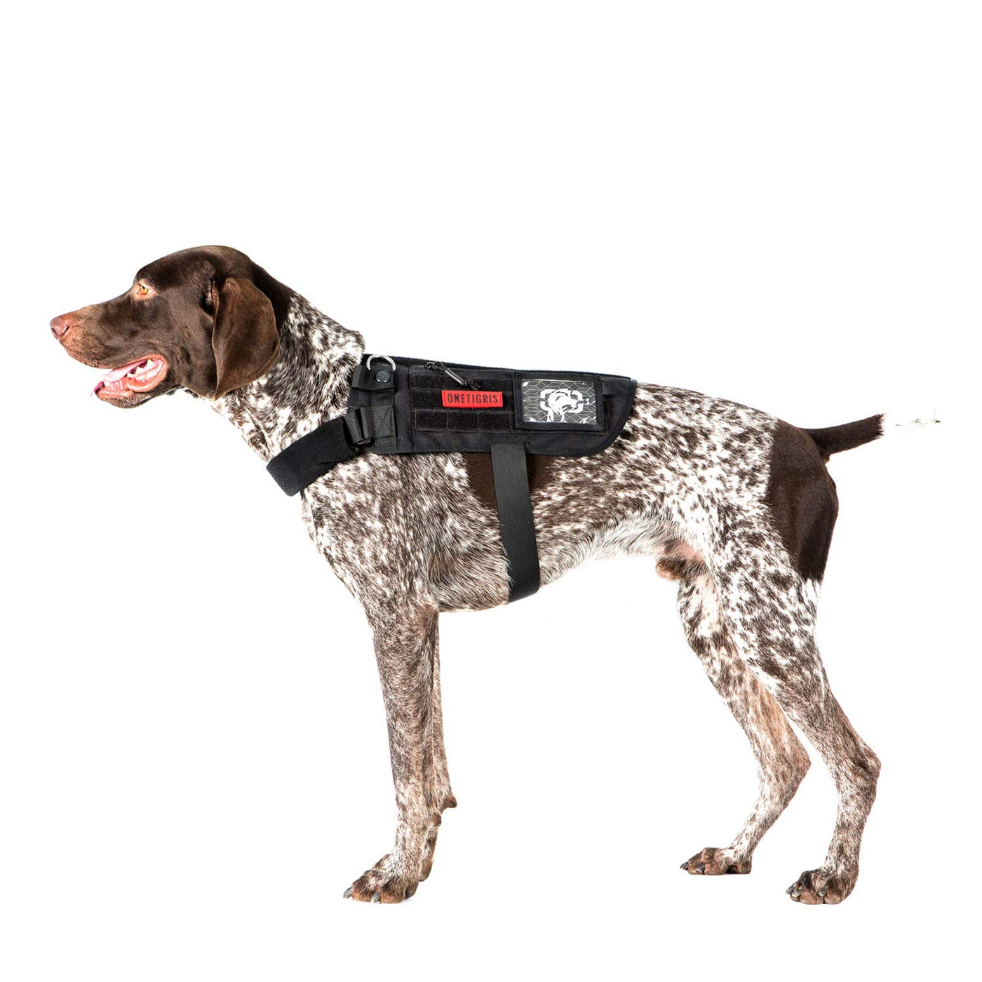 Why Choose OneTigris APOLLO 09 Tactical Harness? Designed with all our canine companions in mind, this is a piece of gear thats likely to become another one of the OneTigris classics, featuring a unique removable neck strap for service dogs with its own harness to attach to while offering function upgrades with its loop surfaced webbing, detachable ID window, and zippered side pockets. Its also a mighty kit for non-service dogs to carry their own gear and name/moral patches, strutting and barking with pride! Note Always measure your dog! The distance between the front end of the harness to the chest strap is 7.5 (19cm). Take this into consideration for male dogs so it doesnt cause discomfort. Specifications Material: 500D Nylon, UTX Buckles, UTX Snap-buttons, Stainless Steel D-rings Dimensions: Neck Girth - 16-30/40cm-76cm Chest Girth - 17-35 /43cm-89cm Back Length - 13 /33cm Side Pocket Dimensions: 9(L)*4.5(W)/22.8cm*11.4cm Belly Strap Pull Strength: Tested at 363lb/165kg Handle Attachment D-ring Pull Strength: Tested at 330lb/150kg Weight: 10.9oz/310g Package Includes OneTigris APOLLO 09 Tactical Harness *1 OneTigris Logo Patch *1