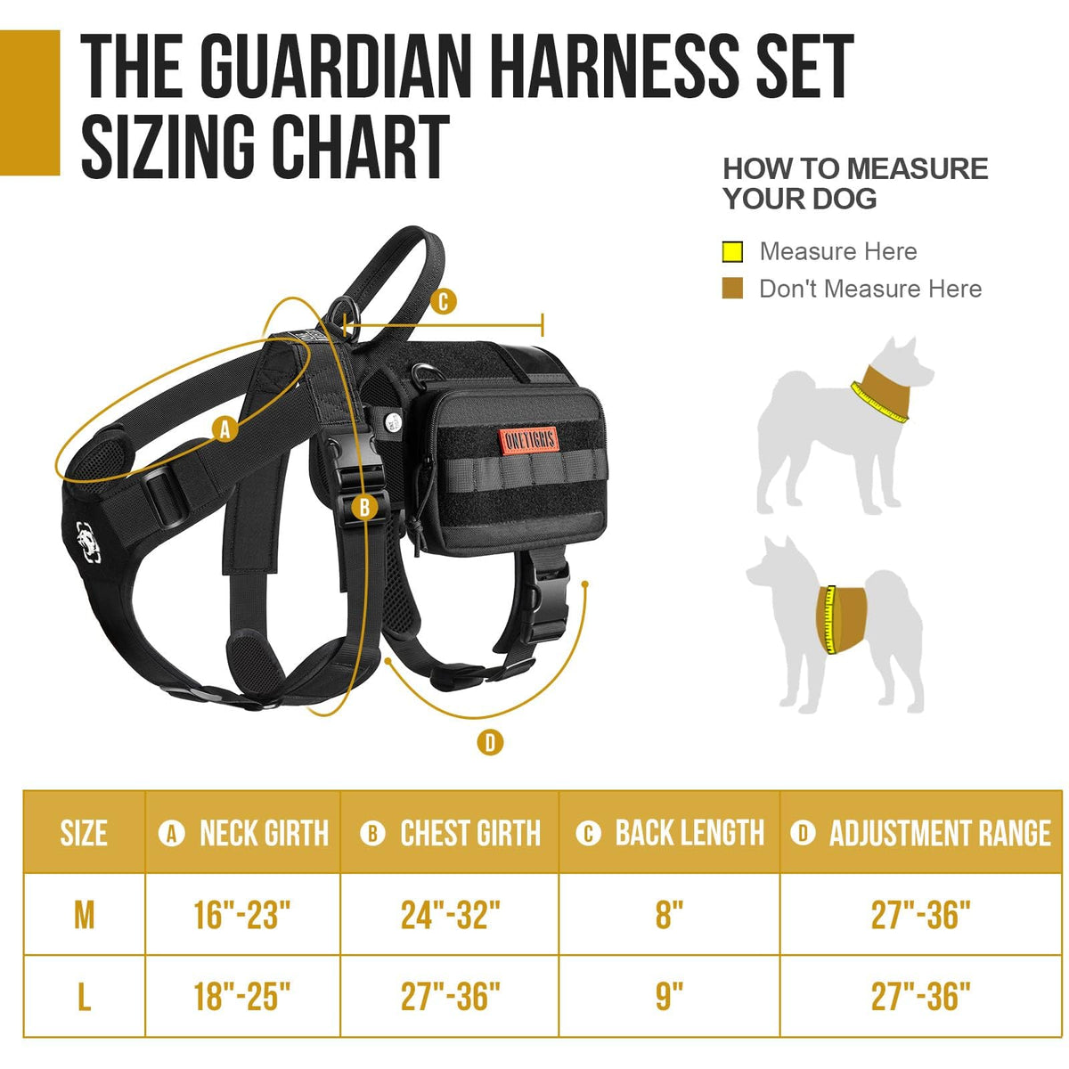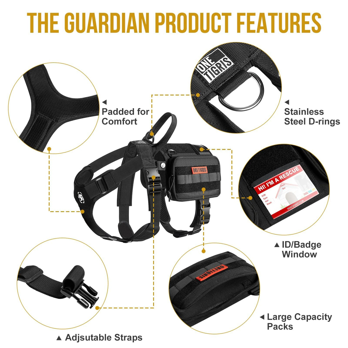 OneTigris Service Dog Vest Harness, Service Dog Cape Guardian Dog Molle Backpack with Pouches for Medium and Large Dogs (Black,