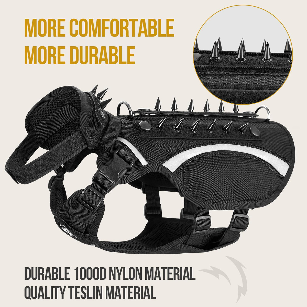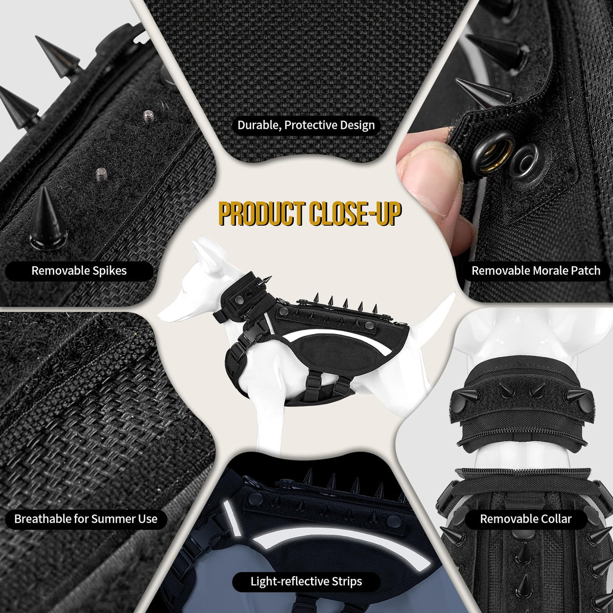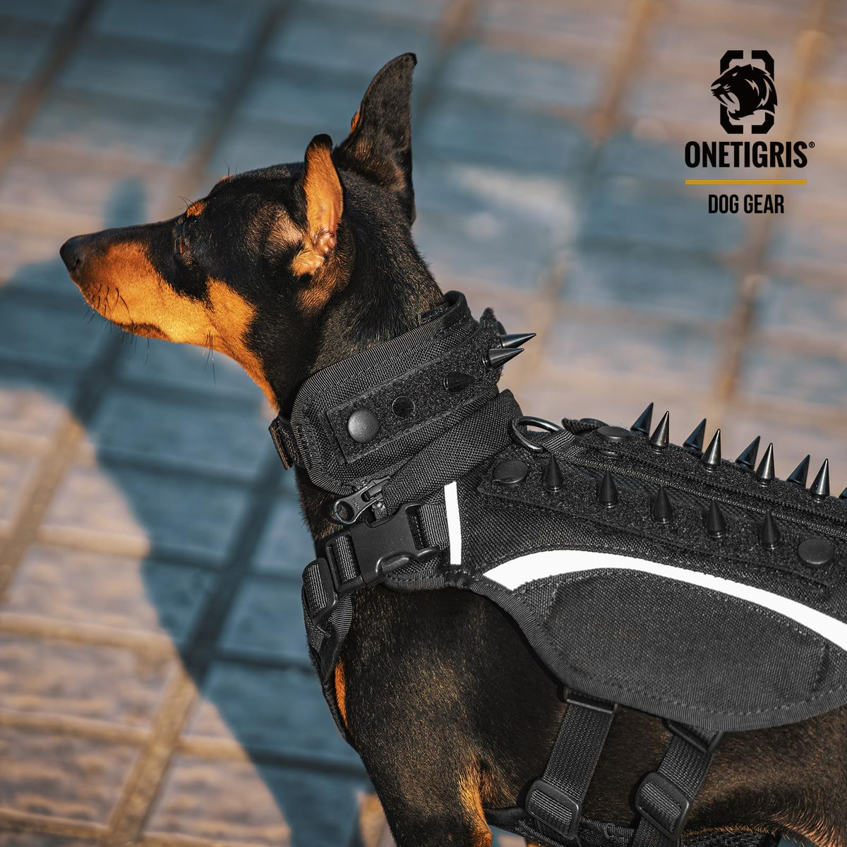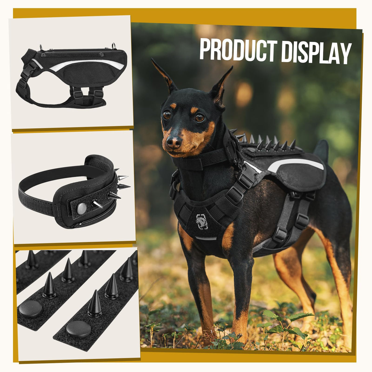 Onetigris Stegosaur Dog Harness With Spikes, Protective Dog Harness With Detachable Collar, Dog Vest With Spikes For Small/Mediu