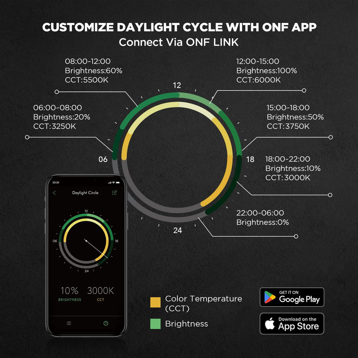 ONF Flat One+ 24/7 Automated LED Aquarium Light, Blue White LED, Mobile APP Remote Controlled, Dimmable Full Spectrum Sunrise / Sunset for Plant Growth