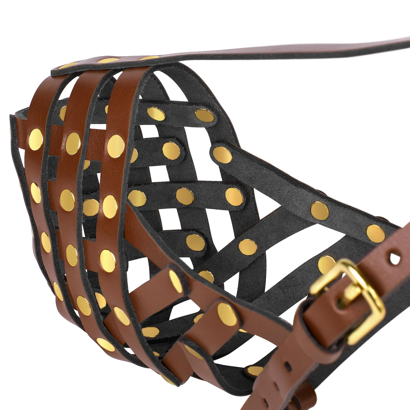 The Universal Fit For Large Breeds Makes This Leather Anti-Bark Basket Muzzle Ideal For Labradors, Golden Retrievers, Flat-Coated Retrievers, Boxers, American Bulldogs, And English Bulldogs. To Ensure A Proper Fit, Please Note That The Labrador Muzzle Size Features A Snout Girth Of 13 3/4 Inches And A Length Of 4 Inches; Measuring Both Dimensions Before Purchasing Is Essential. For Training, Allow Your Dog To Sniff And Explore The Muzzle Before Use. Start With Short Sessions, Rewarding Them With Treats And Praise, And Gradually Extend The Time Until Your Dog Feels Comfortable Wearing It. Crafted From Premium Genuine Leather With Stainless-Steel Rivets, Our Cage Muzzle Guarantees Safety And Durability For Large Dogs. The Adjustable Leather Straps Provide A Secure And Comfortable Fit, Preventing Slipping During Use. Handmade With A Skin-Friendly Cross-Weave Design, This Breathable And Durable Muzzle Is Soft On Your Dogs Fur, Prioritizing Your Pets Comfort Above All.