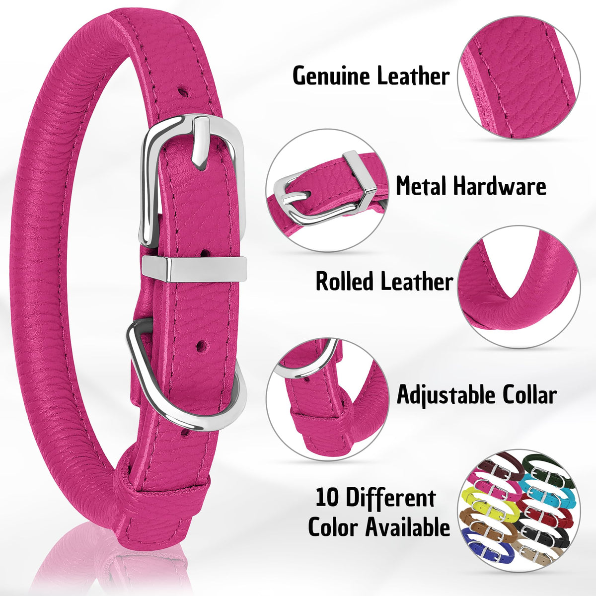 Premium Rolled Leather Dog Collar - Comfort, Durability & Style In One! Give Your Furry Friend The Best With Our Handcrafted Genuine Leather Dog Collar, Designed For Comfort, Durability, And Timeless Style. The Rolled Leather Construction Not Only Enhances Durability But Also Prevents Fur Matting And Tangling, Making It An Excellent Choice For Long-Haired Dogs. Why Choose Our Rolled Leather Dog Collar? ?? Premium-Quality Leather - Made From 100% Genuine Leather, This Collar Is Soft, Flexible, And Designed To Last. Unlike Synthetic Alternatives, It Becomes Even More Comfortable Over Time. ?? Secure & Adjustable Fit - Equipped With A Strong Metal Buckle And D-Ring, Ensuring A Snug And Reliable Fit. Adjustability Allows Your Dog To Move Freely While Staying Secure. ?? Tailored For All Breeds - Available In Seven Different Sizes, This Collar Is Suitable For Small, Medium, And Large Dogs. Whether You Have A Tiny Pup Or A Big Breed, Weve Got The Perfect Fit. ?? Stylish Color Selection - Choose From 11 Vibrant Colors, Including Black, Blue, Brown, Pink, Green, Red, And More. A Perfect Way To Match Your Dogs Personality With A Stylish Accessory. ?? Perfect For Long-Haired Dogs - The Rounded Edges Prevent Fur From Getting Tangled, Making It Ideal For Breeds With Thick Or Long Coats. ?? Easy Maintenance & Longevity - Leather Is Naturally Strong And Long-Lasting, But To Keep It In Top Condition, Avoid Excessive Moisture And Clean With Specialized Leather Care Products. Sizing Guide: For The Best Fit, Measure Your Dog'S Neck Using A Soft Measuring Tape And Choose The Right Size:. Xxs: 7 -9 Xs: 8 -11 S: 10 -13 M: 12 -15 L: 14 -18 Xl: 17 -21 Xxl: 20 -24 ?? Upgrade Your Dogs Collar Today - Stylish, Comfortable, And Built To Last! ??.