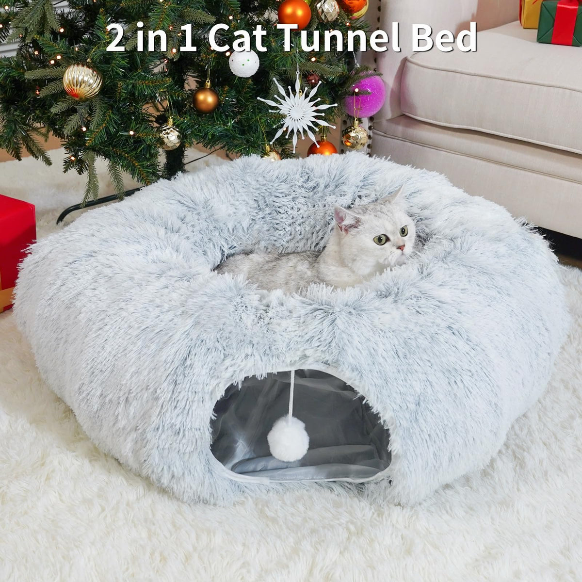 Oozazemm Cat Tunnel Bed With Washable Cushion, Cat Tunnels For Indoor Cats, Collapsible Cat Donut Tunnel For Medium & Large Cat,