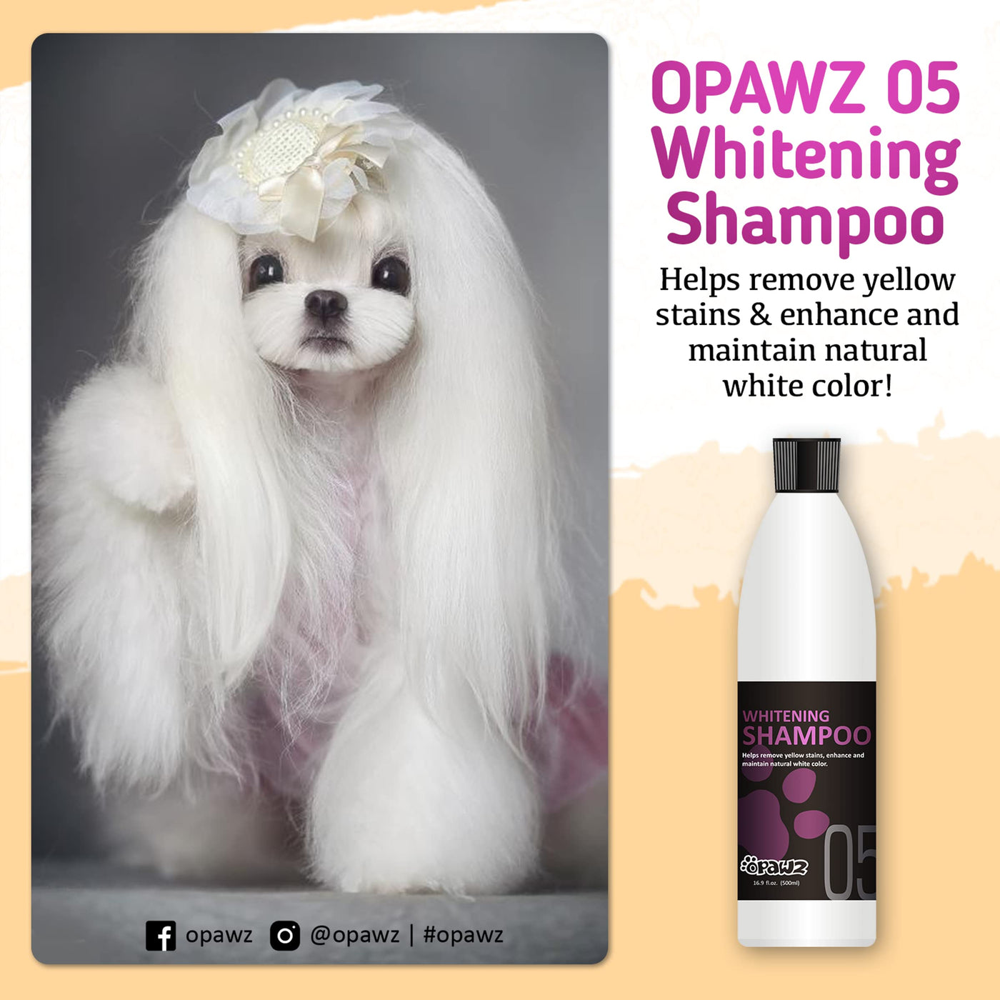 With OPAWZ Whitening Dog Shampoo, you can ensure that your pet’s coat remains beautiful, bright, and free from unsightly yellow stains. Ideal for all white-haired pets, this shampoo not only cleans but also enhances their natural beauty. Invest in your pet's grooming routine with this trusted and effective product.
