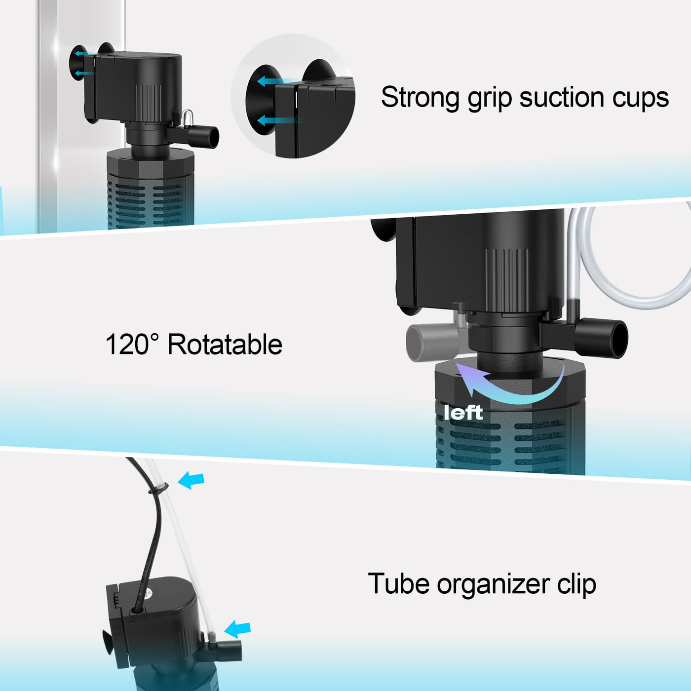 Efficient & Quick Filtration: Equipped with a powerful motor and 360