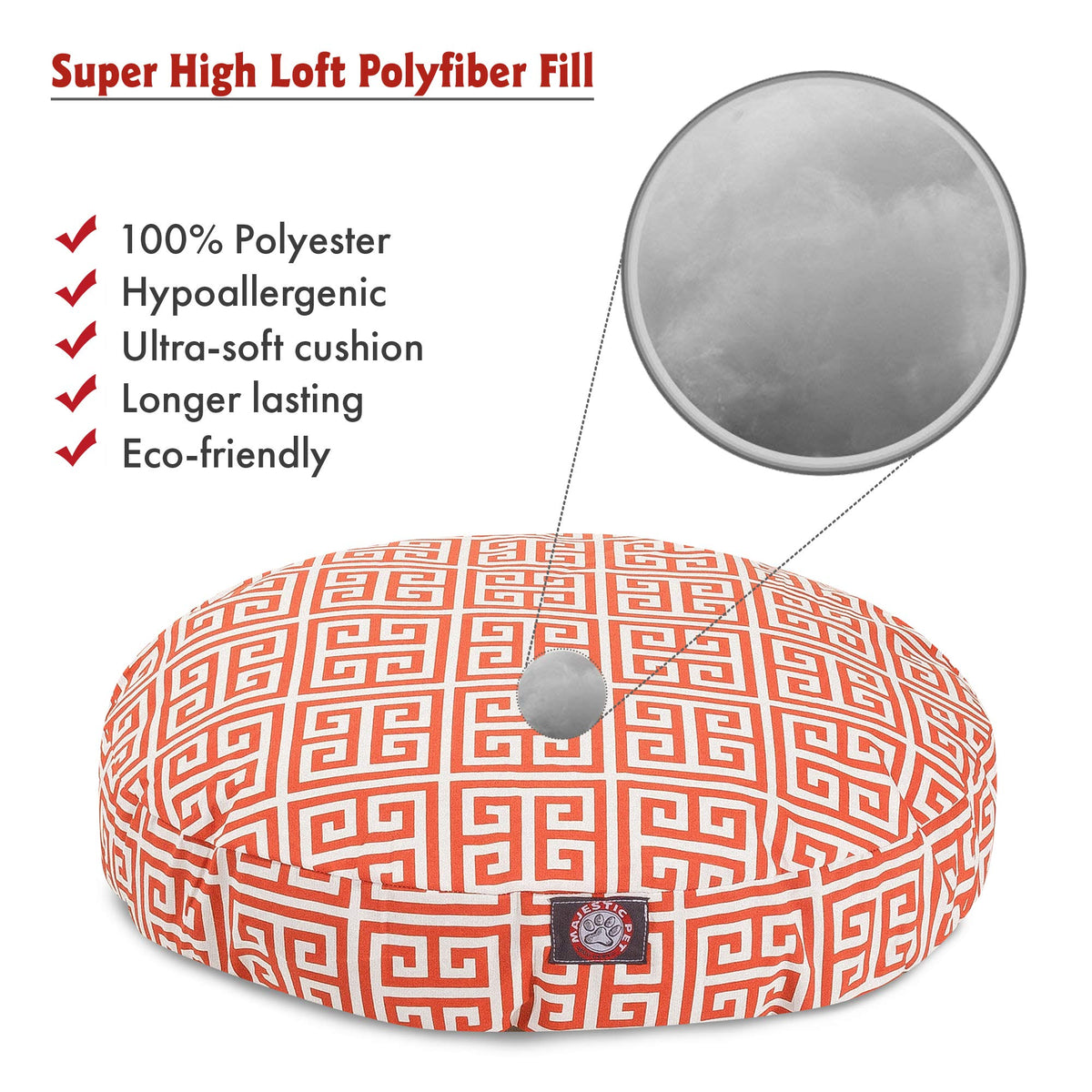 Let The Orange Towers Pet Bed Add Style And Comfort To Your Pets Life. The Majestic Pet Orange Towers Medium Round Pet Bed Is The Perfect Combination Of Style, Function And Comfort. It Features A Removable Zippered Slipcover That Is Woven From Durable Outdoor Treated Polyester, With 1000 Hours Of Uv Protection. The Base Of The Bed Is Made Of Heavy Duty Waterproof 300/600 Denier Fabric, Which Allows You To Move Your Pet Wherever You Are, Inside Or Out. Each Bed Is Filled With A Super Plush Fiberfill That Provides Ample Amounts Of Comfort. To Wash: Spot Clean The Slipcover With A Mild Detergent And Hang Dry. Dimensions: 36 X 36 X 5.