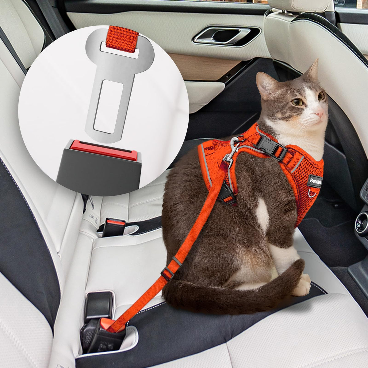 Adjustable Cat Harness: The Upper And Lower Adjustable Buckles Can Adapt To The Size Of Most Fat Cats, And The Small Design Worn On The Side Can Greatly Increase The Cat'S Cooperation, And At The Same Time Prevent The Cat From Breaking Free Without Being Strangled. Reserved Hook: You Can Hang A Creative Id Card Reservation Phone Or Locator On The Cat'S Chest, So That Your Little Cutie Can Accurately Locate The Location Or Dial Your Phone When You Are Kind Enough To Get Lost. Additional Car Seat Belts: Curious Cats Are Always Worrying When They Jump Around In The Car, And The Seat Belt Buckle Allows The Cat To Have Its Own Seat Belt. Reflective Strip Breathable Harness: The Soft And Breathable Cat Harness Has A Reflective Strip That Reflects Light, So When Visibility Drops, You Can Simply Take Out Your Flashlight And Search Around To Find It.