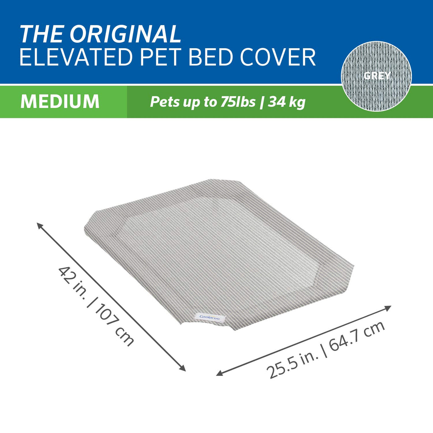 Q: What sizes are available for the Original Pet Bed Replacement Cover?A: The Original Pet Bed Replacement Cover is available in multiple sizes, including a medium size measuring 35" x 25.5". This ensures a perfect fit for your Coolaroo elevated pet bed.