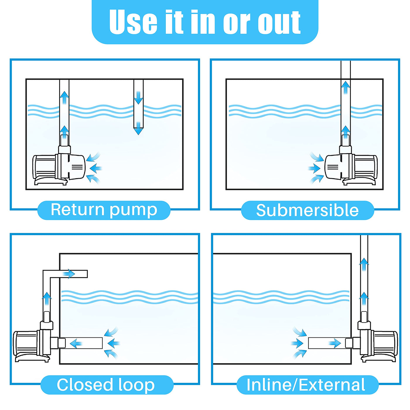 Q: Can the pump be used in both saltwater and freshwater aquariums?A: Yes, the Orlushy DC-12000 is designed with no copper components, making it safe for use in both saltwater and freshwater aquariums.