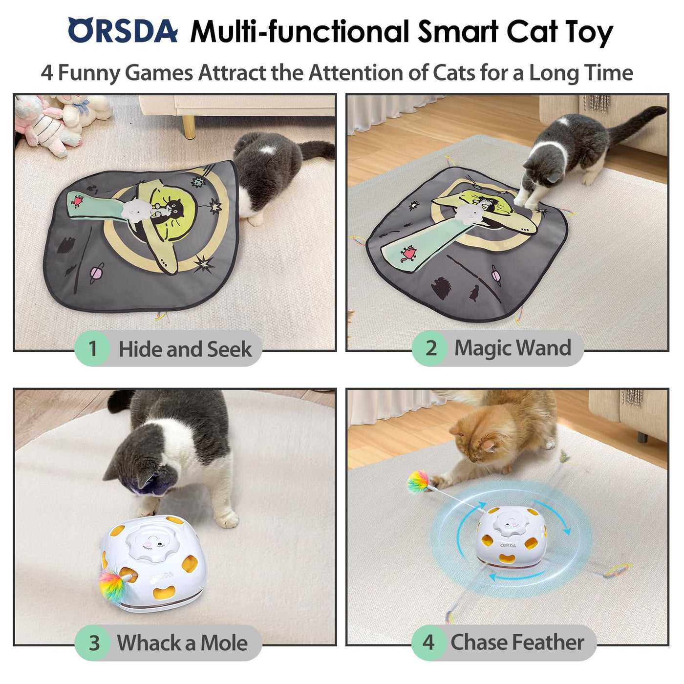 Orsda Cat Toy, 4-In-1 Interactive Cat Toys For Indoor Cats, Rechargeable Automatic Cat Whack A Mole Toy, Hide And Seek Kitten Wand Toy With Moving Feather, Electronic Entertainment Toys For All Breeds