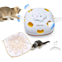 Orsda Cat Toy, Chargeable 4-In-1 Interactive Cat Toys For Indoor Cats, Hide And Seek, Cat Wand Toy, Whack A Mole, Automatic Kitt