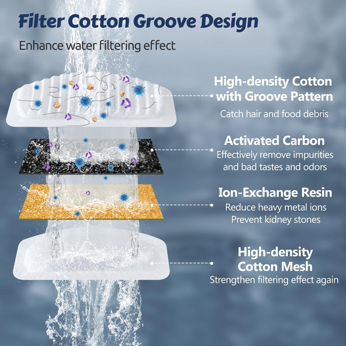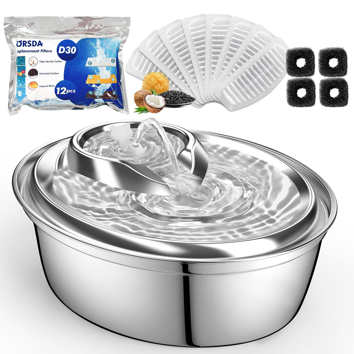 Orsda Cat Water Fountain, 2L Stainless Steel Pet Water Fountain, Automatic Drinking Fountain Dog Water Dispenser With 12 Replace