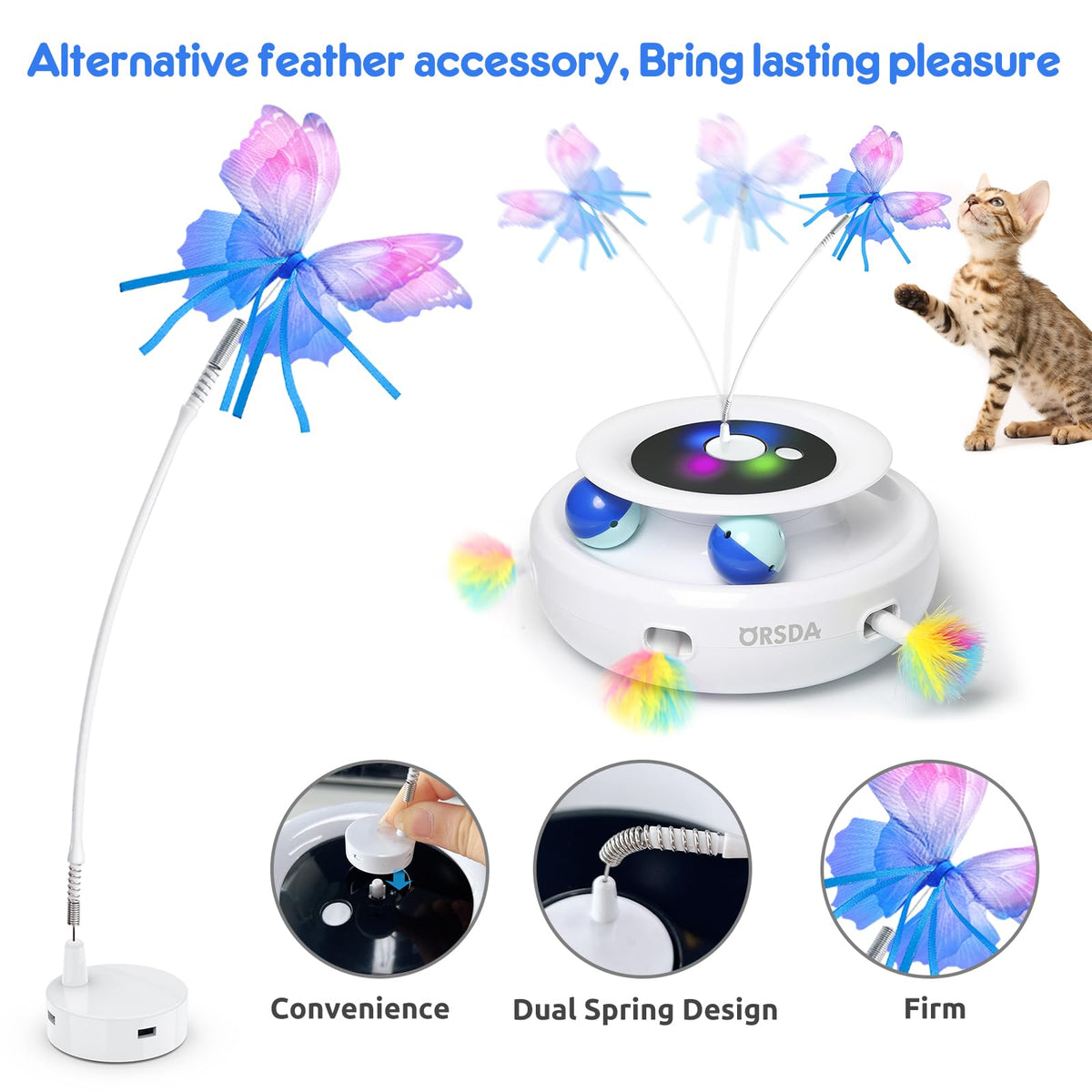 Orsda3 Pcs Cat Toy Replaceable Butterflies Toy Accessories, Handmade Fabric Butterfly Toys