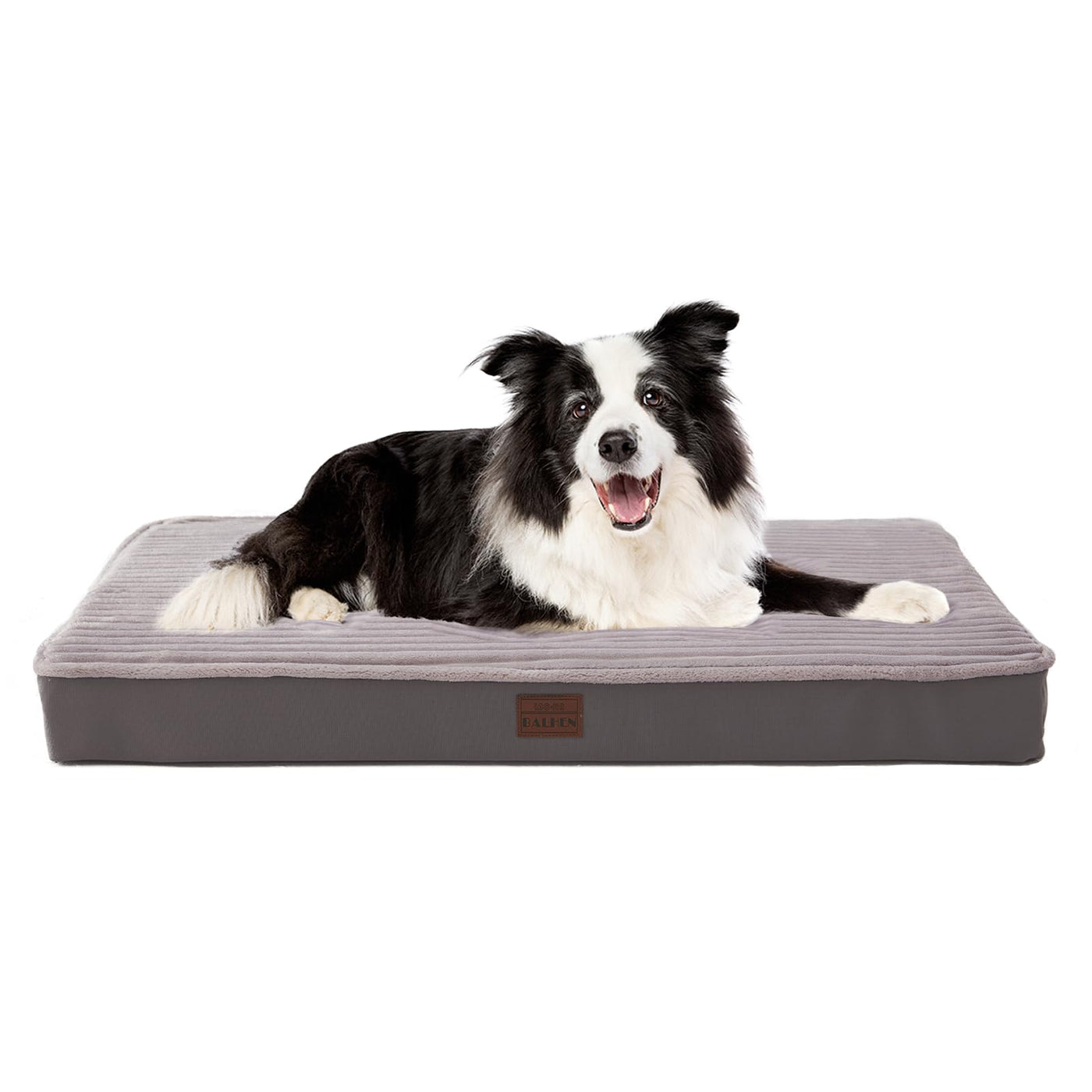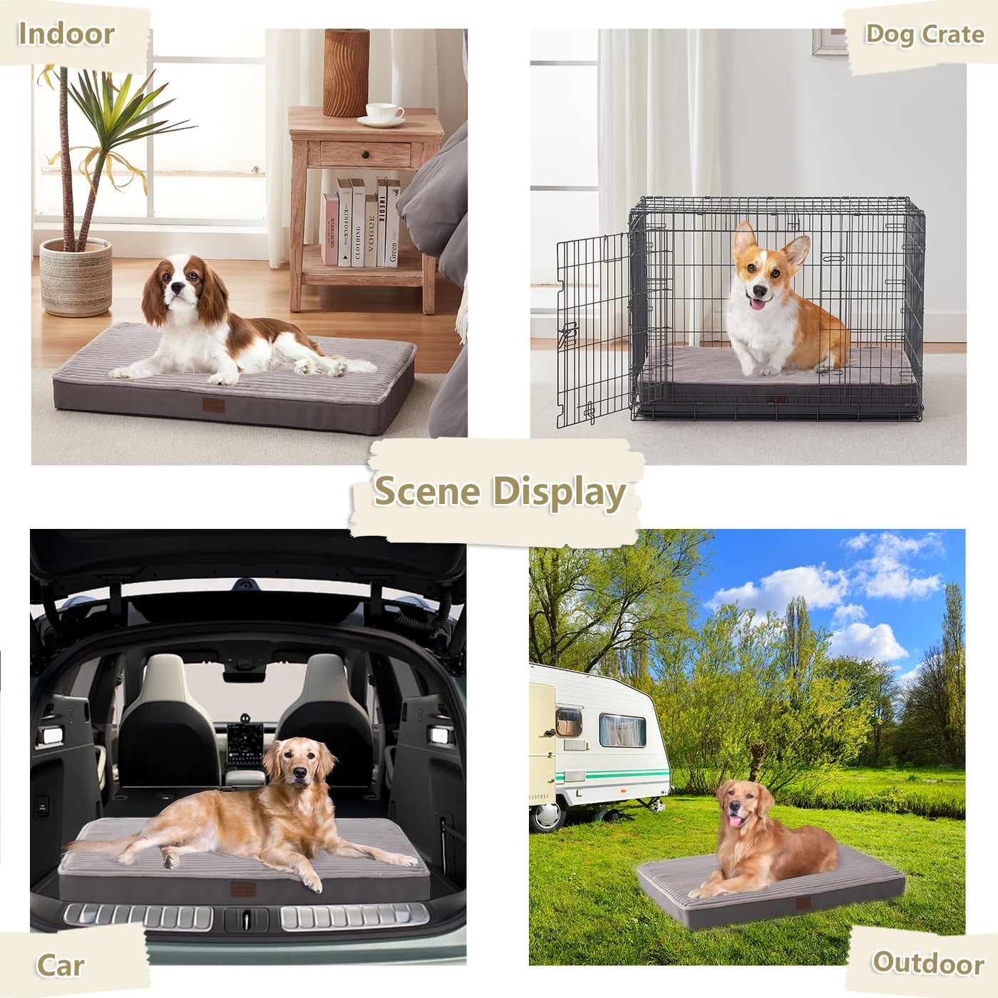 Orthopedic Dog Beds For Large, Medium, Small Dogs, Plush Washable Dog Bed With Egg Crate Foam, Waterproof Dog Bed With Removable Cover & Anti-Slip Bottom, Comfy Striped Dog Crate Bed, 36X23 Inch, Gray
