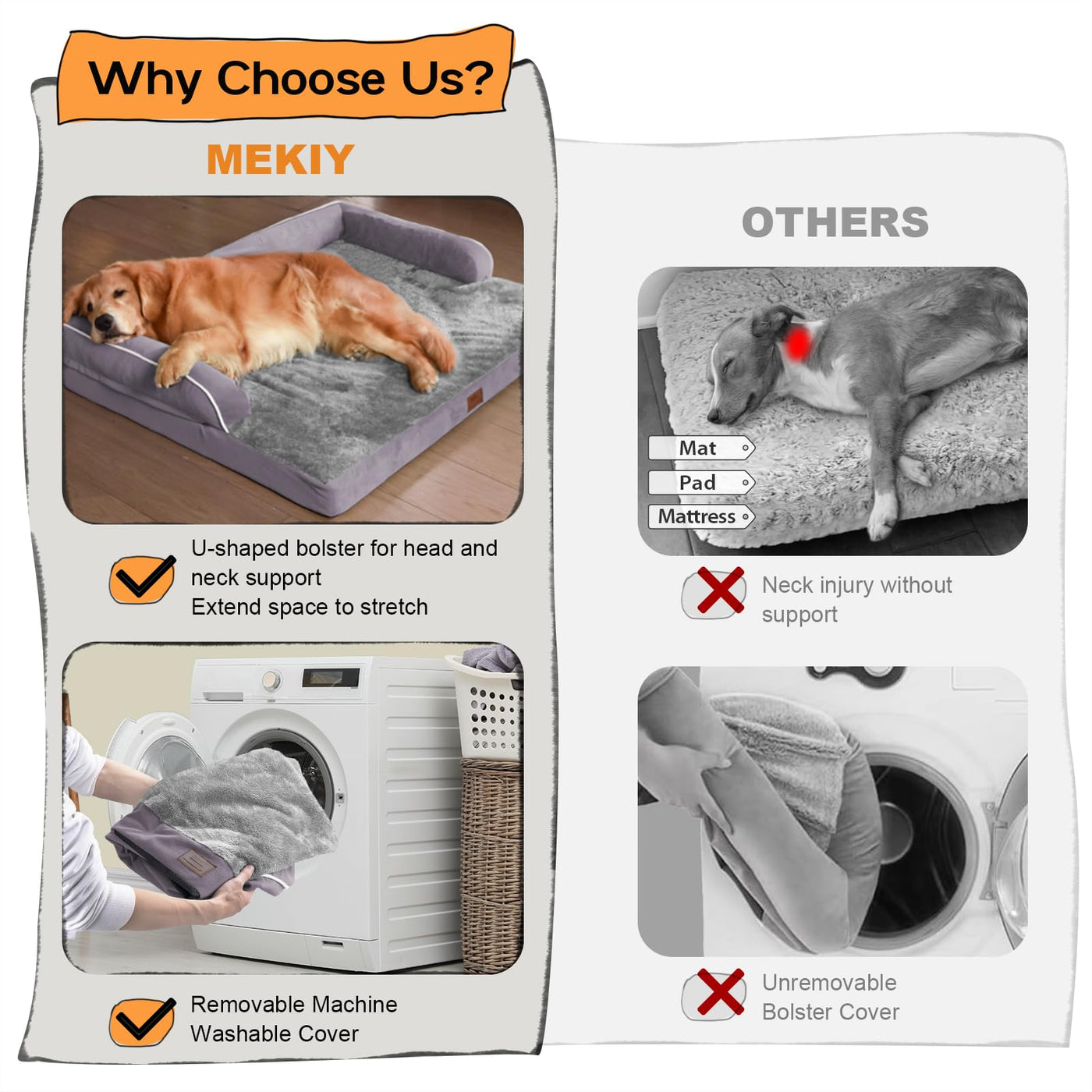 Orthopedic Large Dog Bed Washable, Orthopedic Dog Bed With Washable Removable Cover, Xlarge Orthopedic Dog Beds For Large Dogs, Waterproof Pet Beds And Non-Slip Bottom, Extra Purple Large Dog Bed