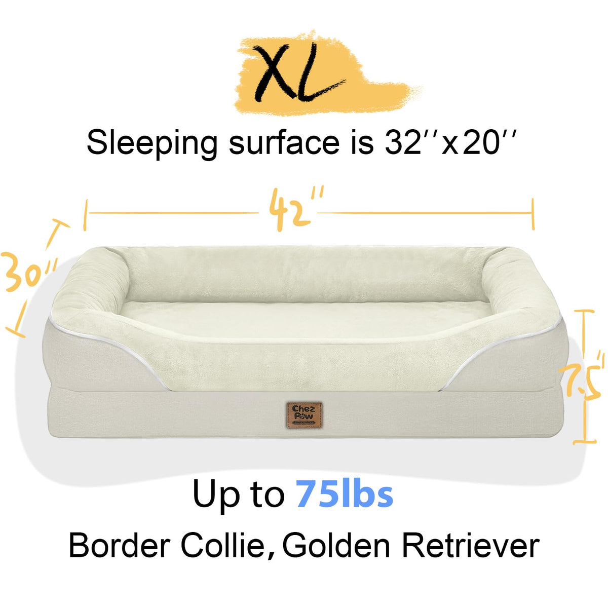 Orthopedic Removable Large Dog Bed -Xl Large Dog Beds With Washable Cover And Removable Bolsters Non-Slip Bottom & Waterproof Pe