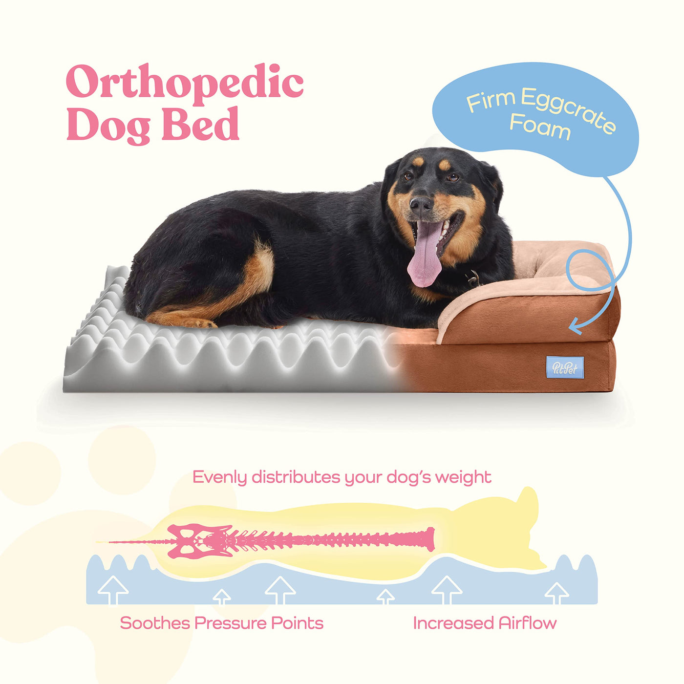 Orthopedic Sofa Dog Bed - Ultra Comfortable Dog Bed For Large Dogs - Breathable & Waterproof Pet Bed- Egg Foam Sofa Bed With Extra Head And Neck Support - (Xx-Large, Brown)