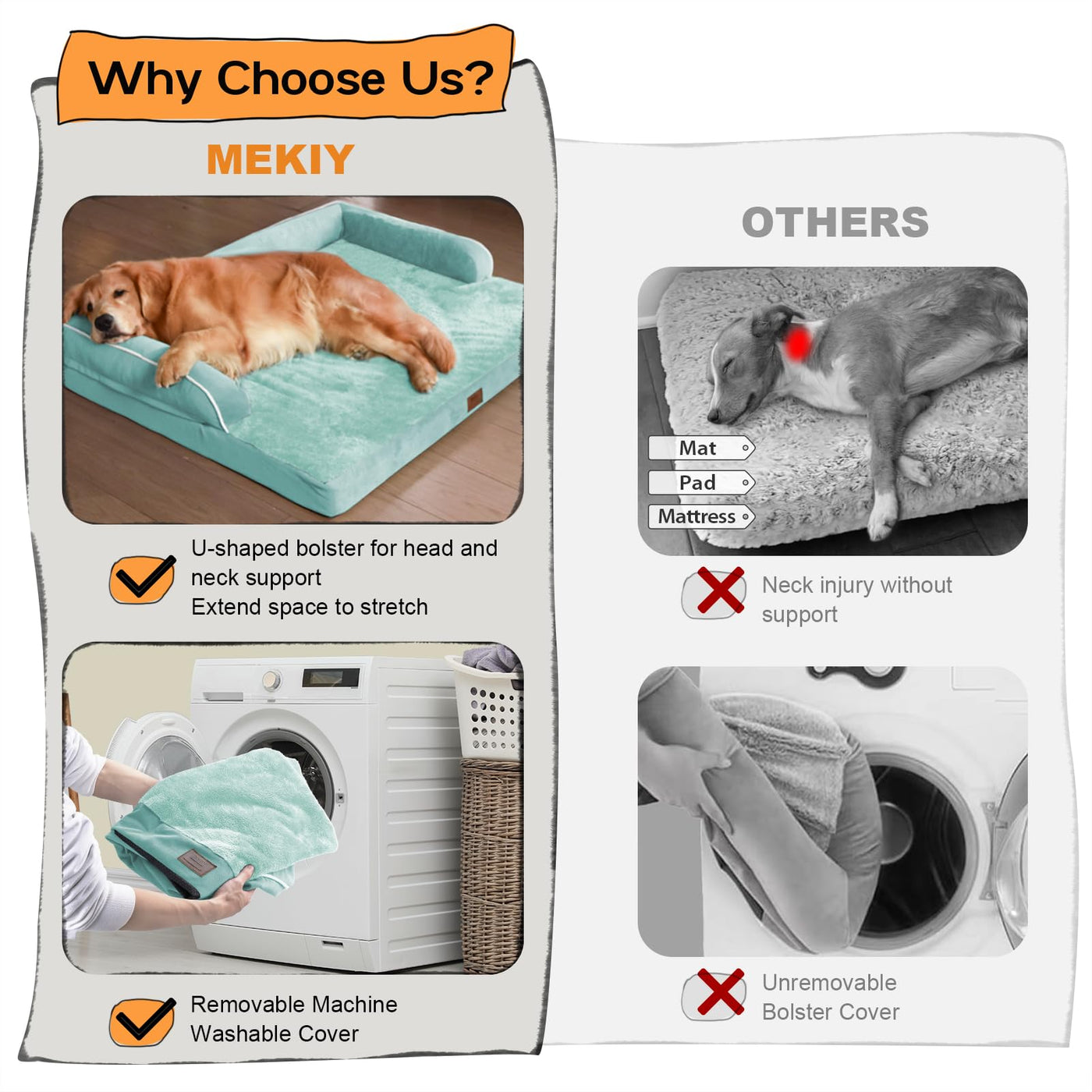?Ergonomic Design? The internal cushion is made of orthopedic egg crate foam which provides good support and protects your pet's neck and spine; Aqua Blue's color design better suits your home's style
