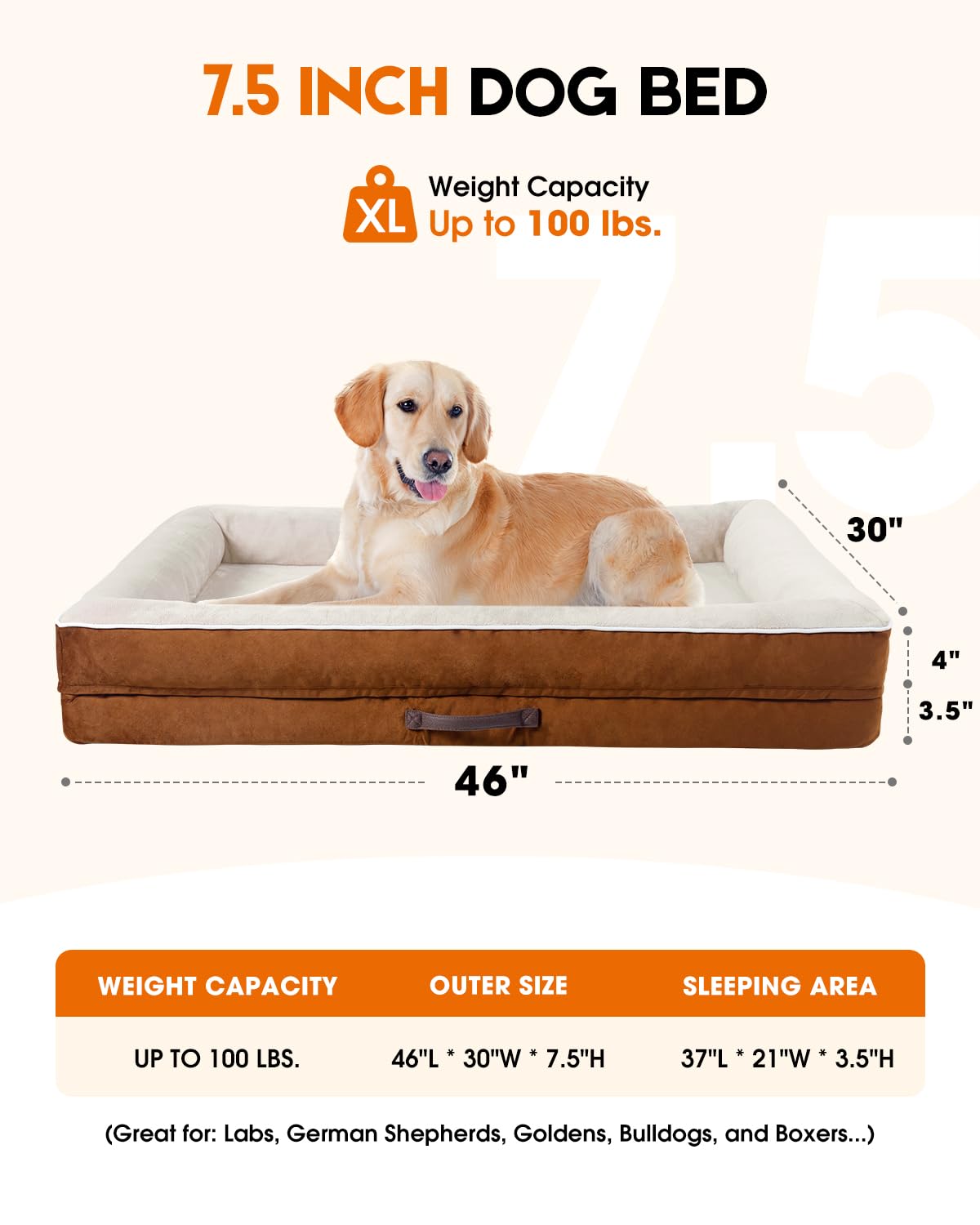 Orthopedic X-Large Dog Bed, Egg Foam Couch With Removable Washable Cover - Waterproof, Non-Slip, Four-Sided Bolster Dogs Bed, Br