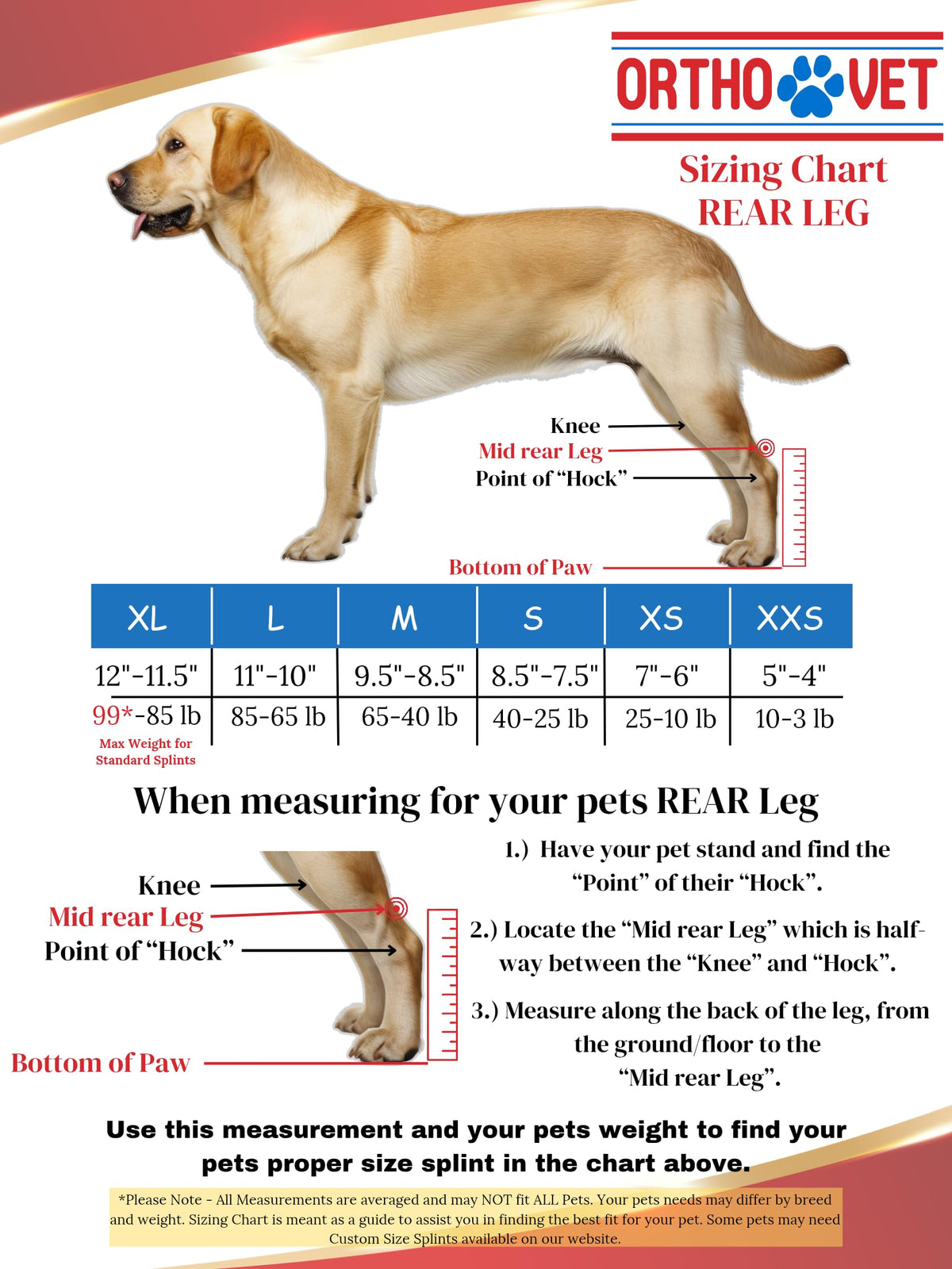 The OrthoVet Flexi Rear Leg Splint is designed to provide leg support for dogs dealing with injuries, arthritis, or post-surgical recovery. Its ergonomic structure stabilizes weakened limbs, helping with sprains, fractures, and nerve damage while maintaining a natural walking position to prevent knuckling. Made in the USA, this splint is crafted from lightweight, durable ABS plastic with a soft foam lining, offering comfort without the bulk of traditional casting. It extends from the paw to mid-forearm, providing reliable back leg support while allowing dogs to stay active during their recovery. Whether used for post-surgery care or long-term mobility support, this splint ensures stability and support for everyday movement.