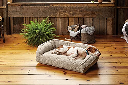 Orvis Comfortfill-Eco Bolster Dog Bed - Plush Rectangular Dog Beds With Three-Sided Bolster For Leaning, Heathered Khaki - Extra