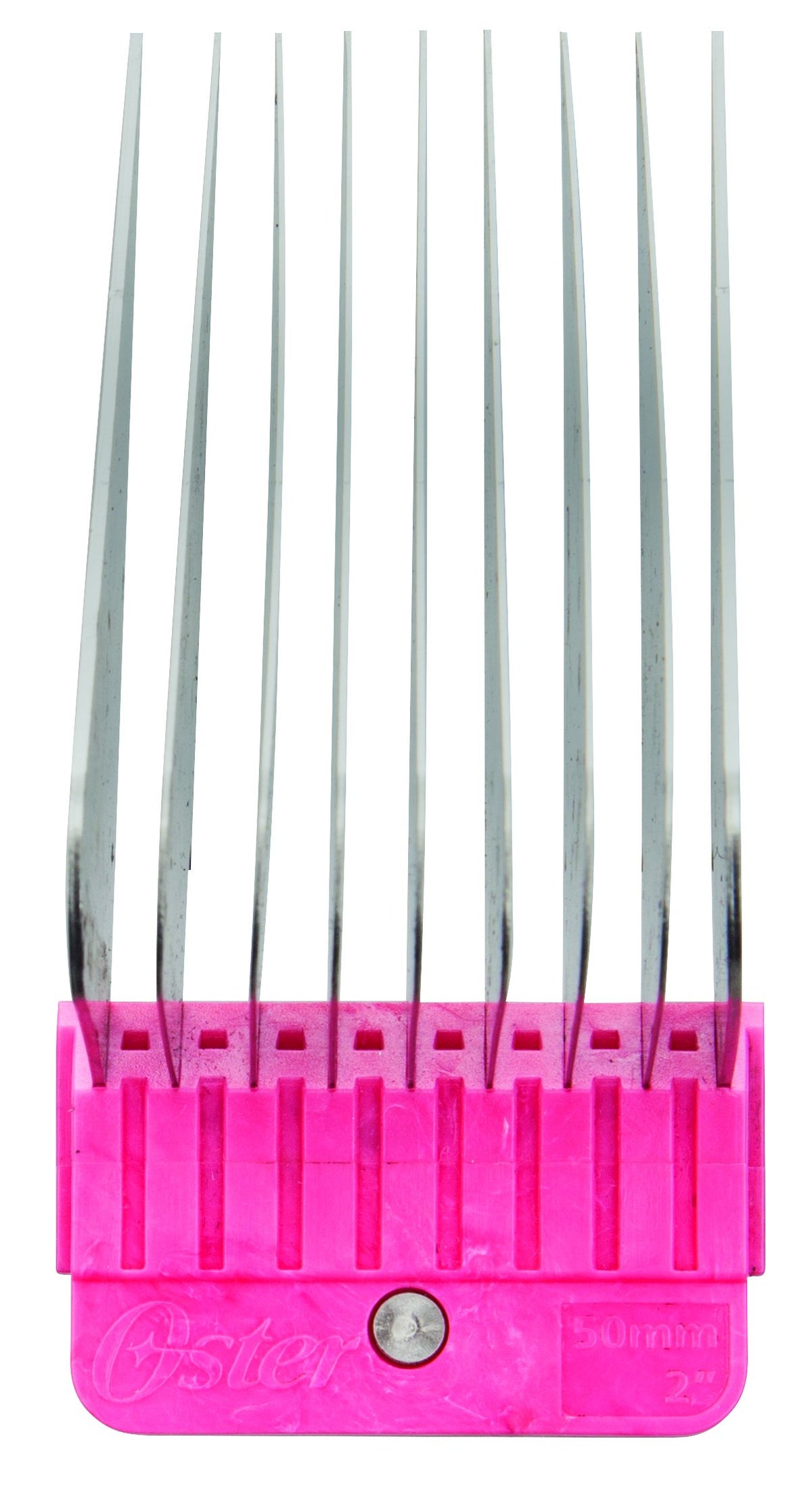 The Oster 10-Piece Stainless Steel Pet Clipper Guide Comb Kit includes a wide variety of color-coded combs stored in a convenient case. These clipper combs are designed to fit over standard A5 detachable blades and come in sizes that address the most common grooming needs. Ranging from 1/16 inch for close cuts to 2 inches for longer, natural length on fluffy coats, these stainless steel guide combs offer versatility for pet owners and groomers.
