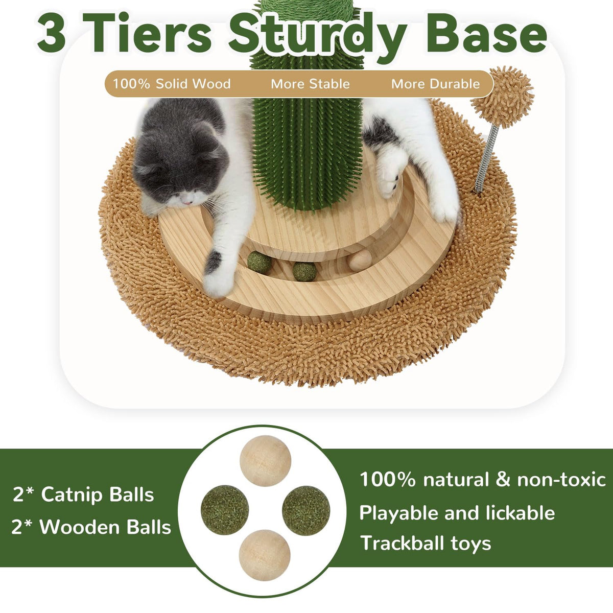 Otob 36' Tall Cat Cactus Scratching Post For All Cats, Natural Sisal Rope Cactus Scratcher Post, Vertical 6-In-1 Interactive Turntable Cat Scratch Post With Soft Ball Toys, Protect Your Furniture