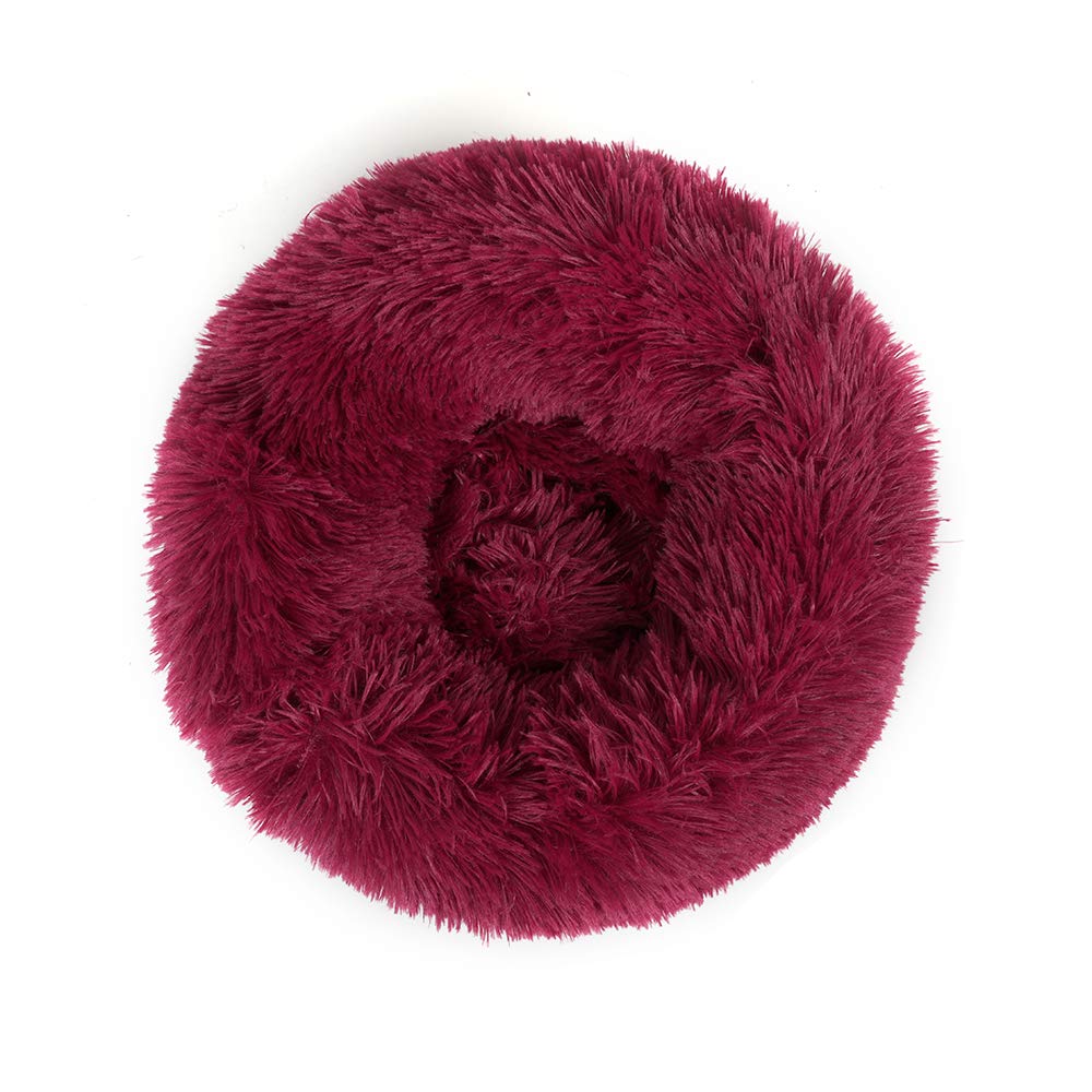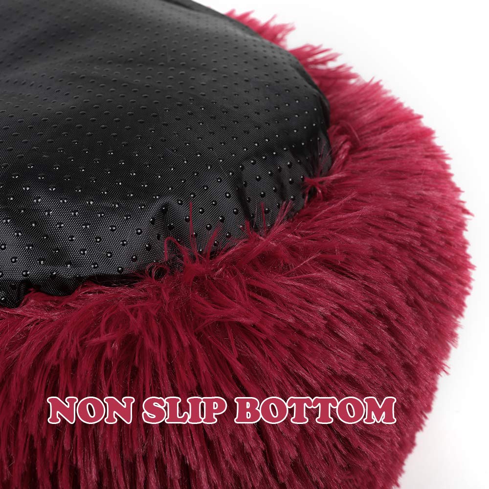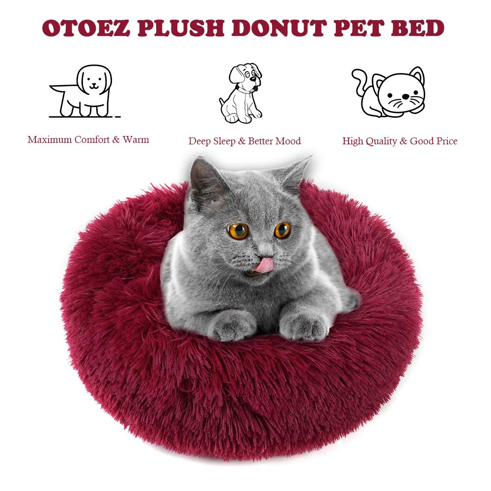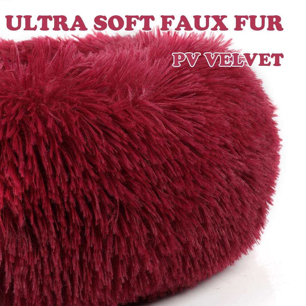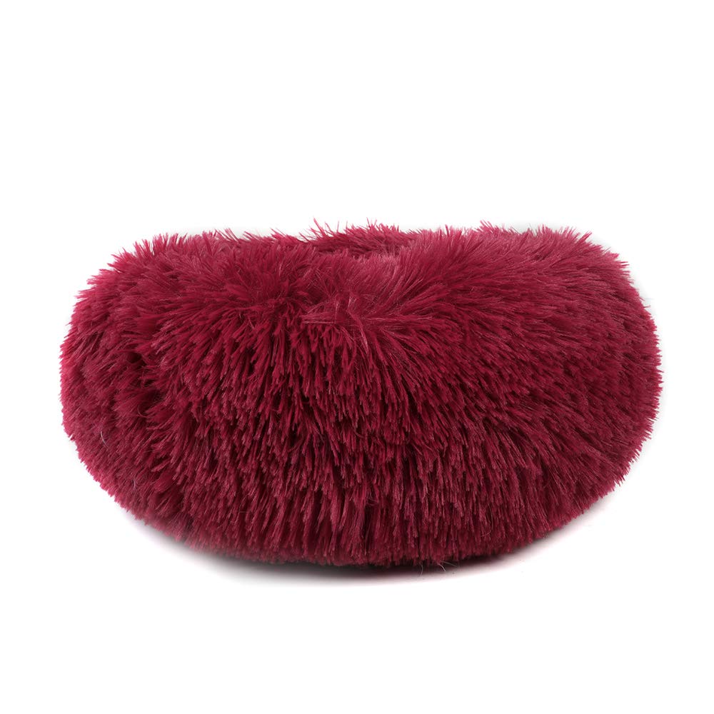 Otoez Round Plush Donut Pet Bed Warm Fur Cuddler Dog Cat Cushion Bed Calming Bed Non-Slip Bottom (15.7', Dark Red)