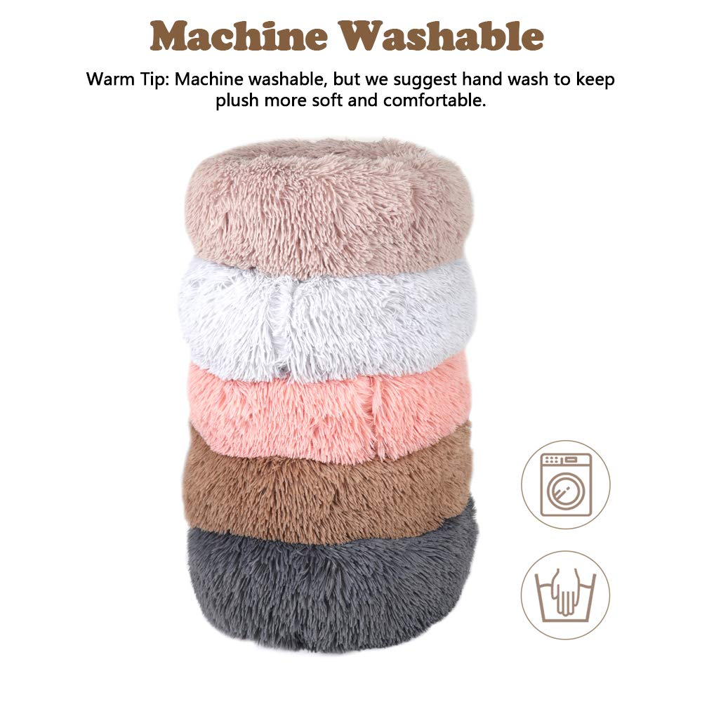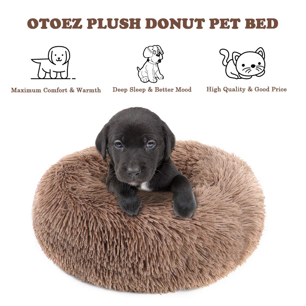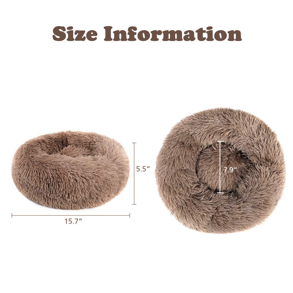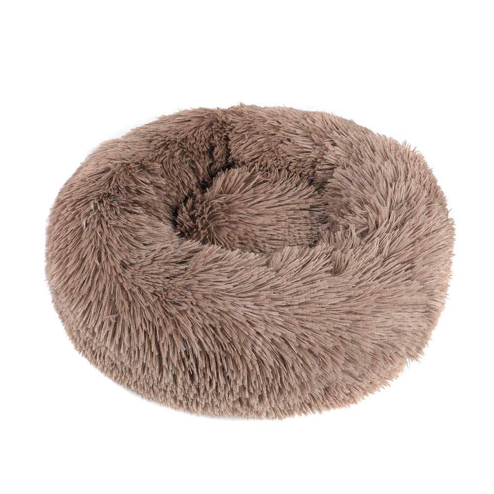Otoez Round Plush Donut Pet Bed Warm Fur Cuddler Dog Cat Cushion Bed Calming Bed Non-Slip Bottom (15.7', Khaki)