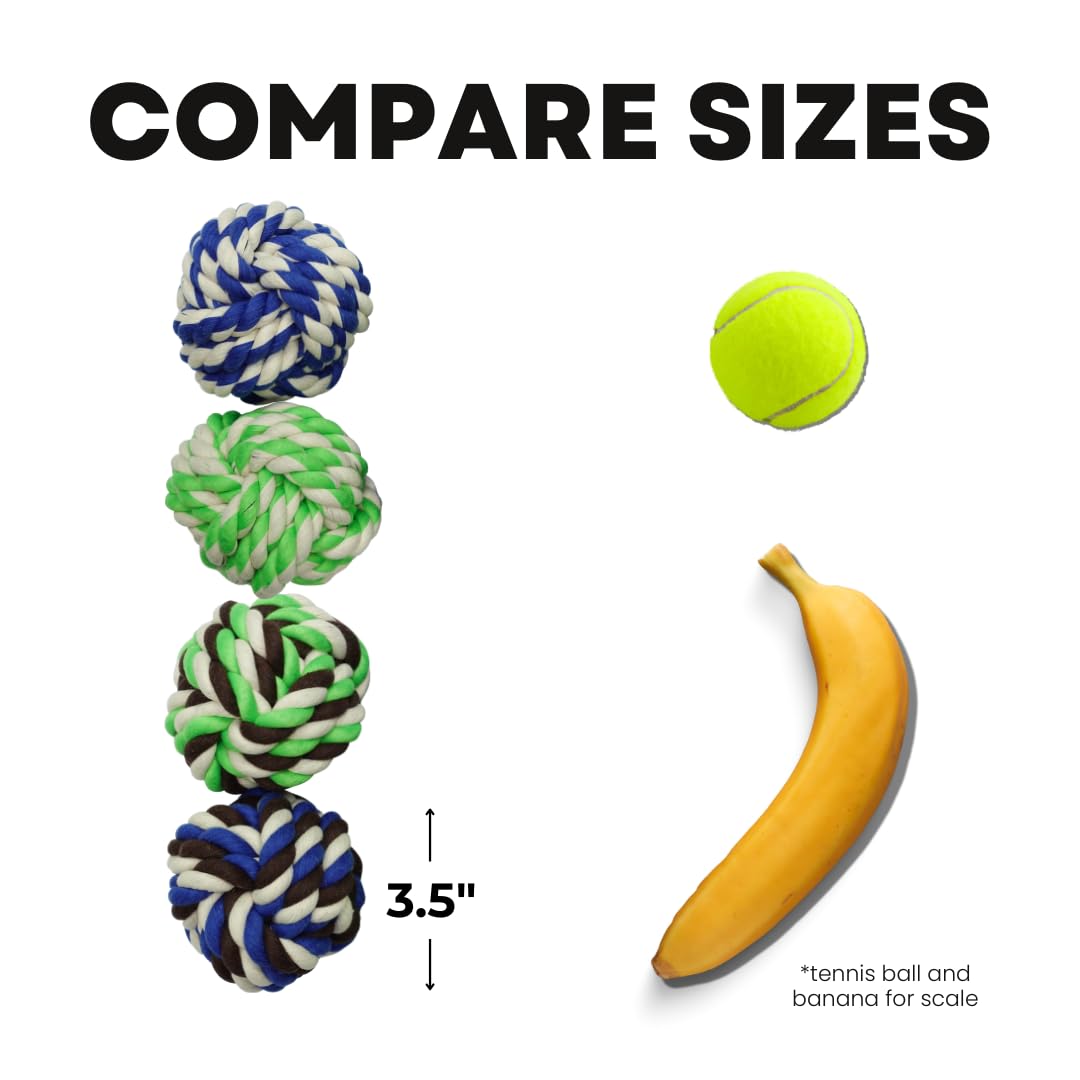 Otterly Pets 4-Pack Cotton Rope Balls for Large Breed Dogs is the perfect toy pack for your furry friend. You and your friend are going to LOVE the beautiful vibrant and unique color matching combo of this toy set. These are perfect for large sized dogs that are looking for something fun and natural to chew on and play with. Each ball is made from 100% natural cotton which ensures safe play and promotes good dental hygiene by cleaning dog teeth.