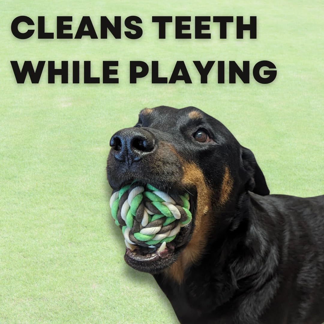 Q: What materials are the Otterly Pets Rope Ball Toys made from?A: The Otterly Pets Washable Rope Ball Toys are made from 100% natural cotton, ensuring safe play for your large breed dog while promoting good dental hygiene.