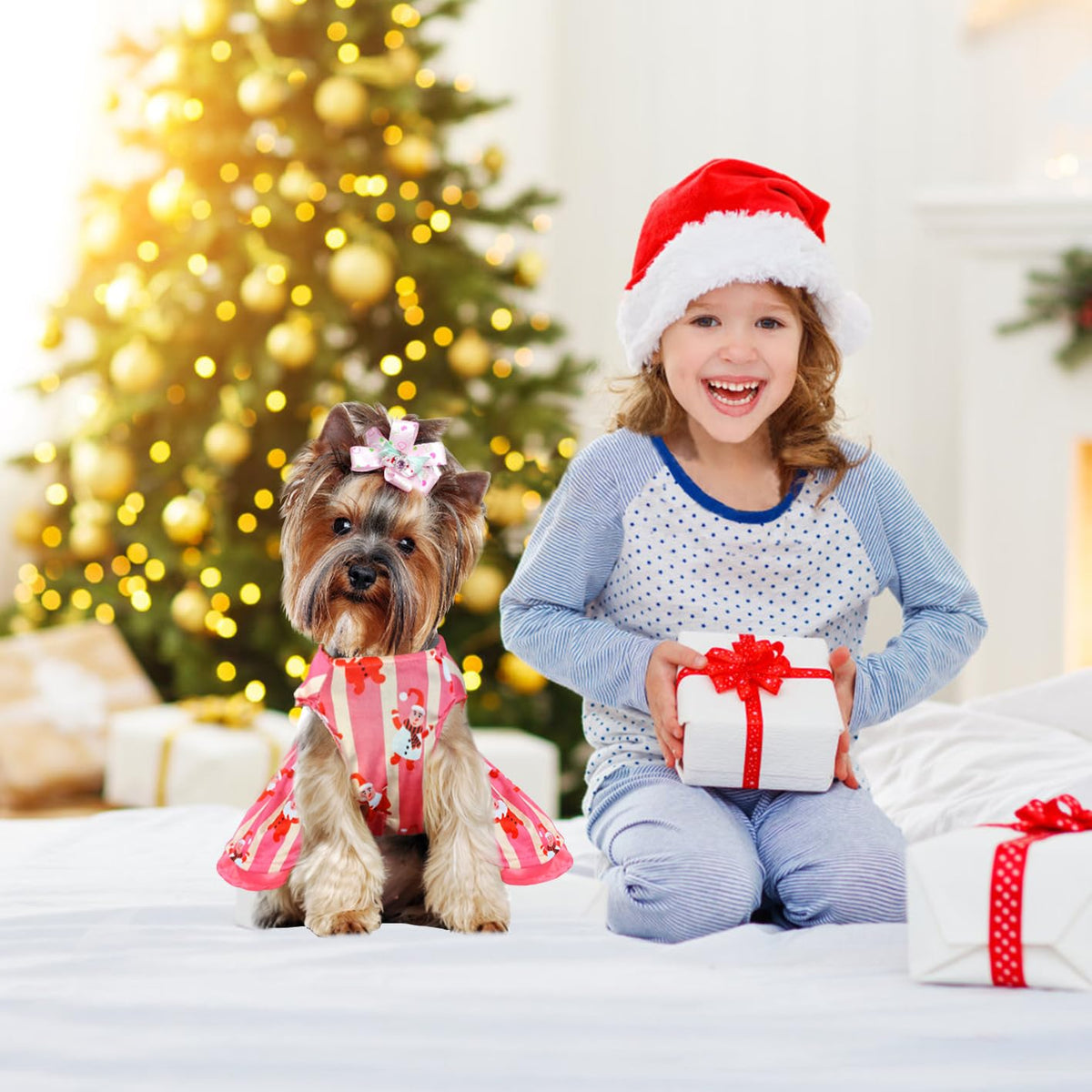 Otunrues Dog Christmas Dress Santa Costume With Bowtie Holiday Party Outfit Lightweight Clothes For Small Medium Dogs Cats S