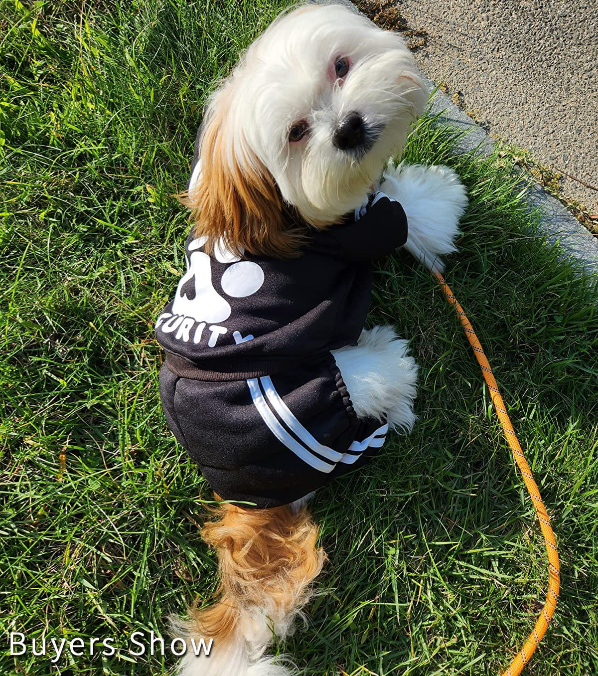 Otunrues Dog Hoodie, Dog Clothes Pullover 4 Legs Dog Jumpsuit Fleece Sweatshirt Security Patterns Dog Outfit Doggie Winter Coat Puppy Hoodied For Small Medium Large Dogs Cats Apparel(Black, Xxs)