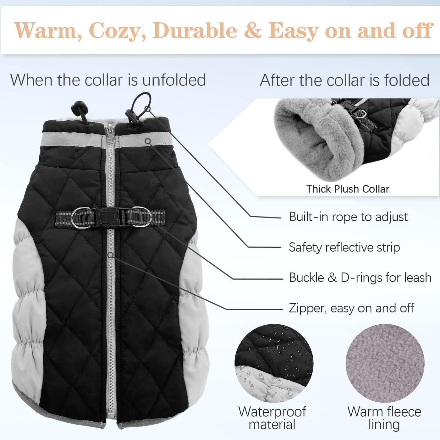 Ouobob Dog Winter Jacket Cozy Reflective Waterproof Windproof Warm Pet Garment,Comfortable Cold Weather Fleece Apparel Outfits With Zipper Closure For Small Medium Large Dogs Puppy Walking,X-Small