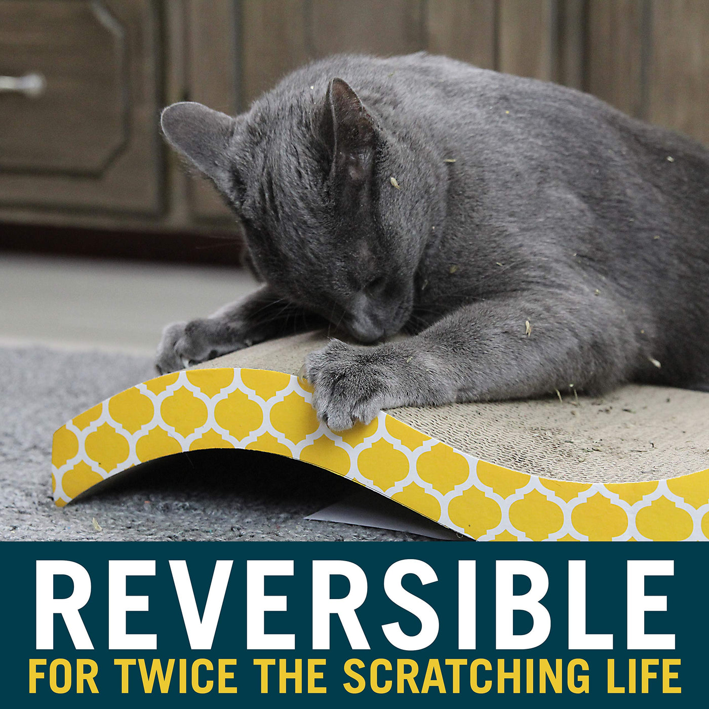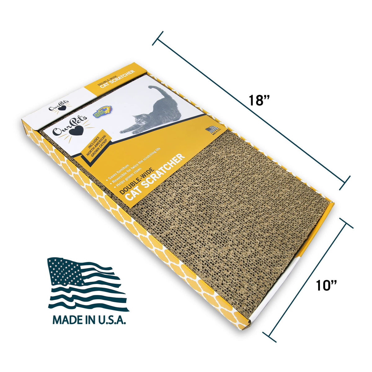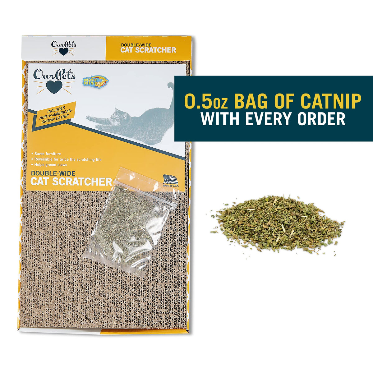 The OurPets cat scratchers are a durable and economical cardboard scratcher and catnip kit that helps train cats from scratching furniture and carpet. The Wave scratching surface which makes for easier scratching and a more comfortable place to rest and play. The included bag of OurPets Cosmic Catnip is 100% premium North-American grown to achieve strongest, most aromatic catnip ever produced.