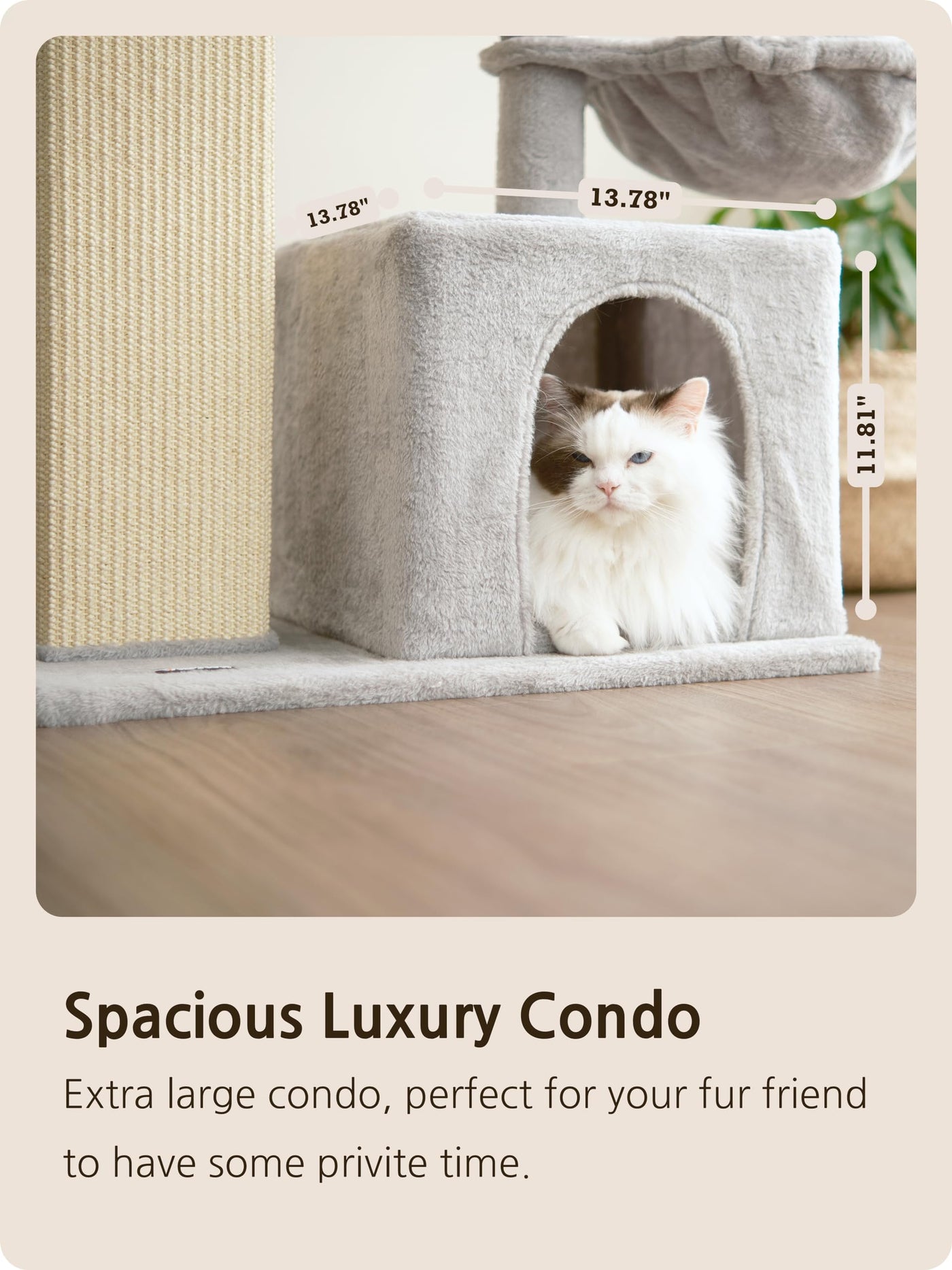 Ouritsu Cat Tree, 27 Inch Cat Tower For Large Cat Indoor, Enlarged Condo, 1 Widened Padded Perch, Luxury Tall Scratching Post, F
