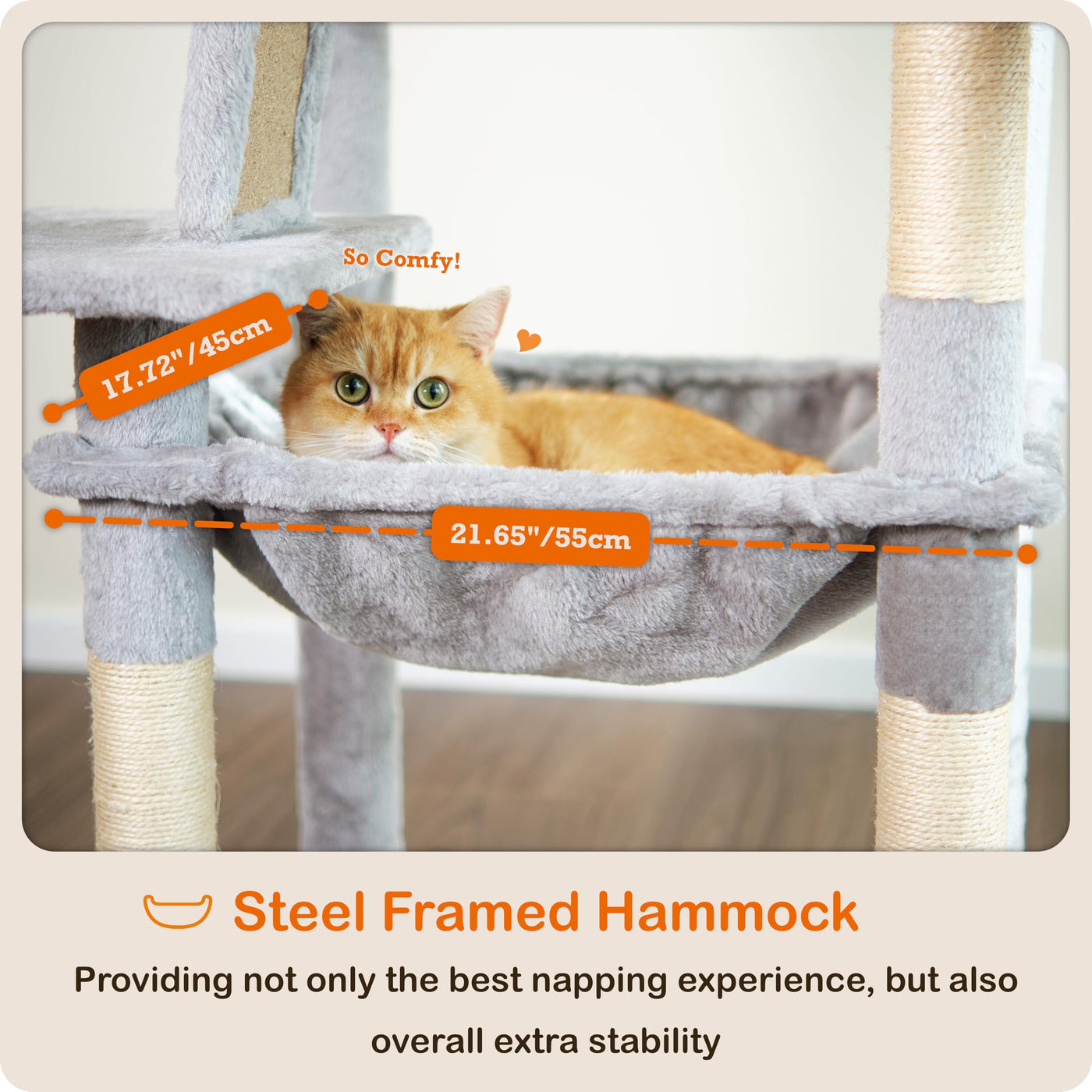 Ouritsu Cat Tree, 56 Inch Tall Cat Tower For Large Cat Indoor, Large Condo, 2 Padded Perches, Steel-Framed Hammock, Scratching P