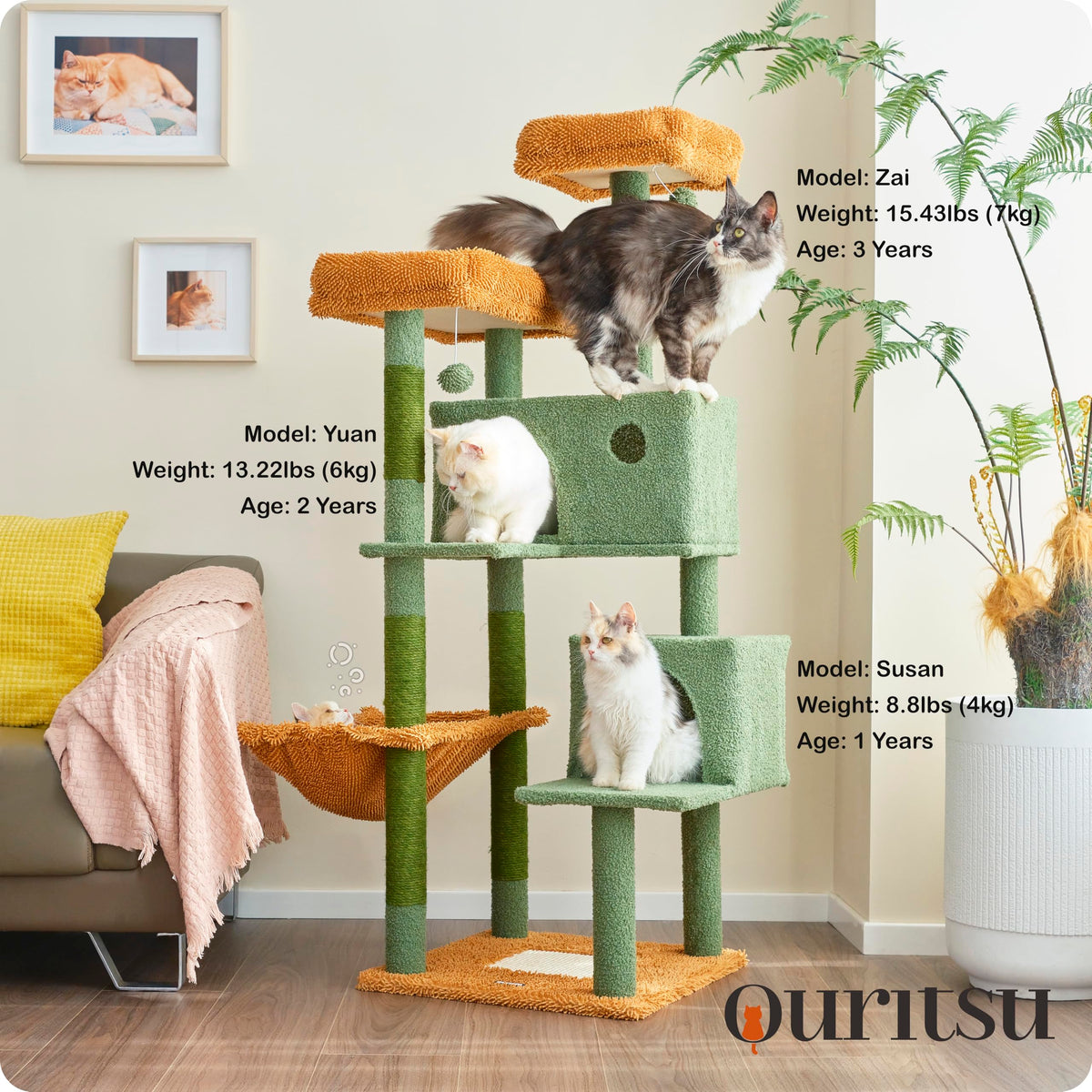 Ouritsu Cat Tree, 57 Inch Cat Tower For Large Cat Indoor, 2 Top Perches With 1 Widened, 2 Condos With 1 Enlarged, Steel Frame Ha