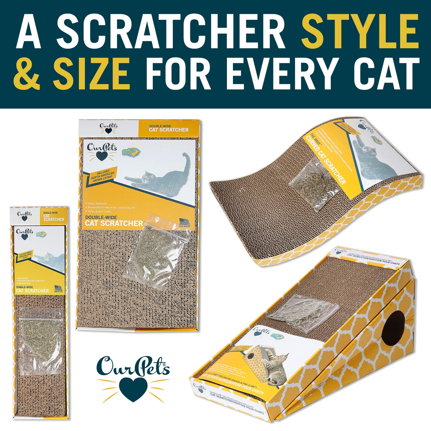 Q: How does this scratcher help with unwanted scratching behavior?A: By placing the OurPet's cat scratcher near areas where your cat tends to scratch furniture, you can redirect their behavior and help protect your couch or other surfaces.
