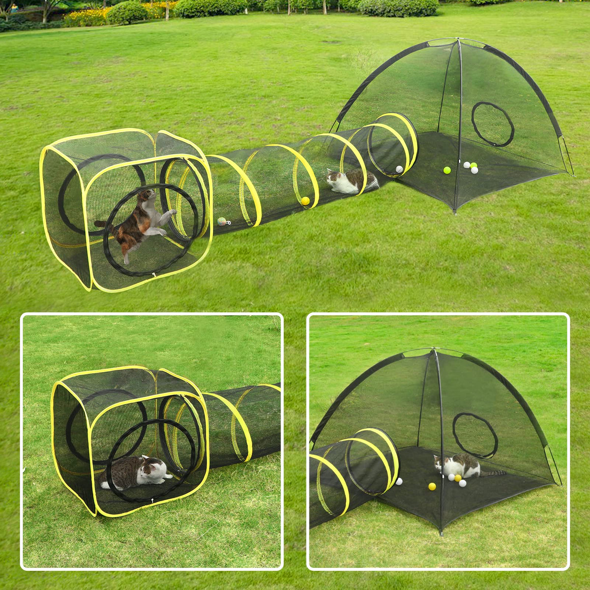 Outdoor Cat Enclosures For Cats, Small Animals Iutdoor 1) Cat Play Tent X 1 2) Cat Play Tunnel X 1 3) Outdoor Cat Play House X 1 4) Cat Harness And Leash For Walking X 1 5) Tease Cat Ball X 1 Applicable Animals : Small Dog, Cats, Rabbits, Guinea Pigs, Ferrets, And Other Small Animals Color : Black Feature : 1) Foldable, Portable, Easy To Clean, Ventilation, Pop-Up 2) 100% Practical And High Quality 3) Very Practical Pet Cage Fence Both For Indoor And Outdoor Please Notice: 1) If The Item Is Defective, Please Contact Us At Once, We Will Send Solution At The First Time. 2) Feel Free To Contact Us With Any Question, We Will Offer You Satisfying Answer.