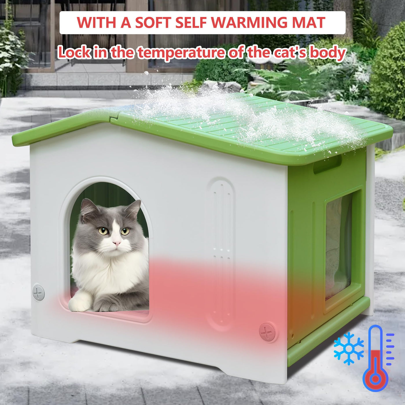 Outdoor Cat House With Escape Door,Feral Cat House With Selfwarming Mat Outdoor Cat House Watwerproof Large Cat House For 1-2 Ca