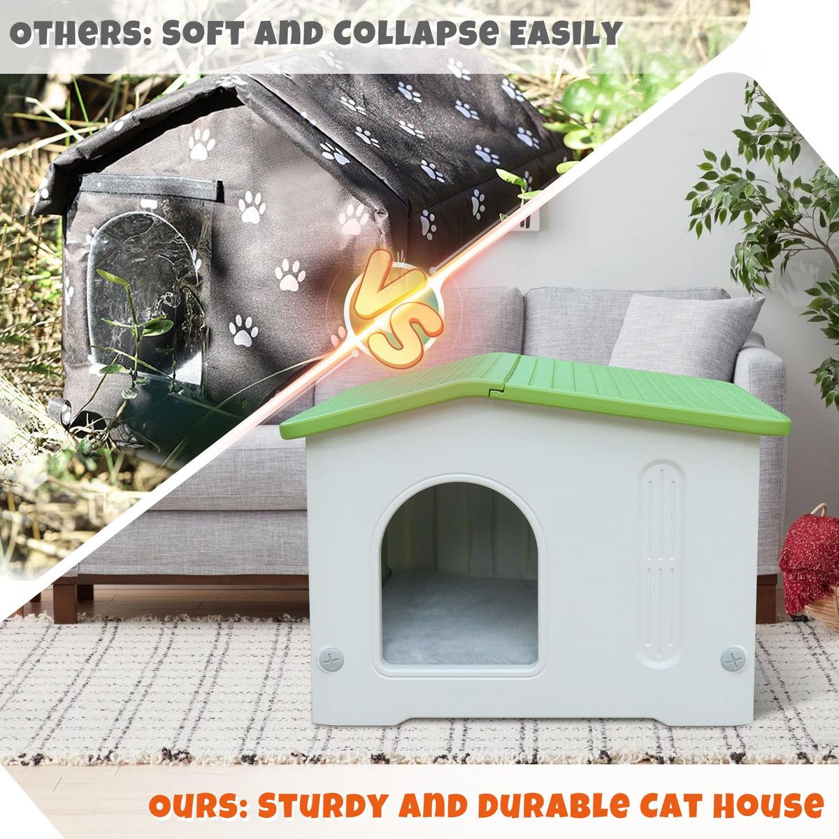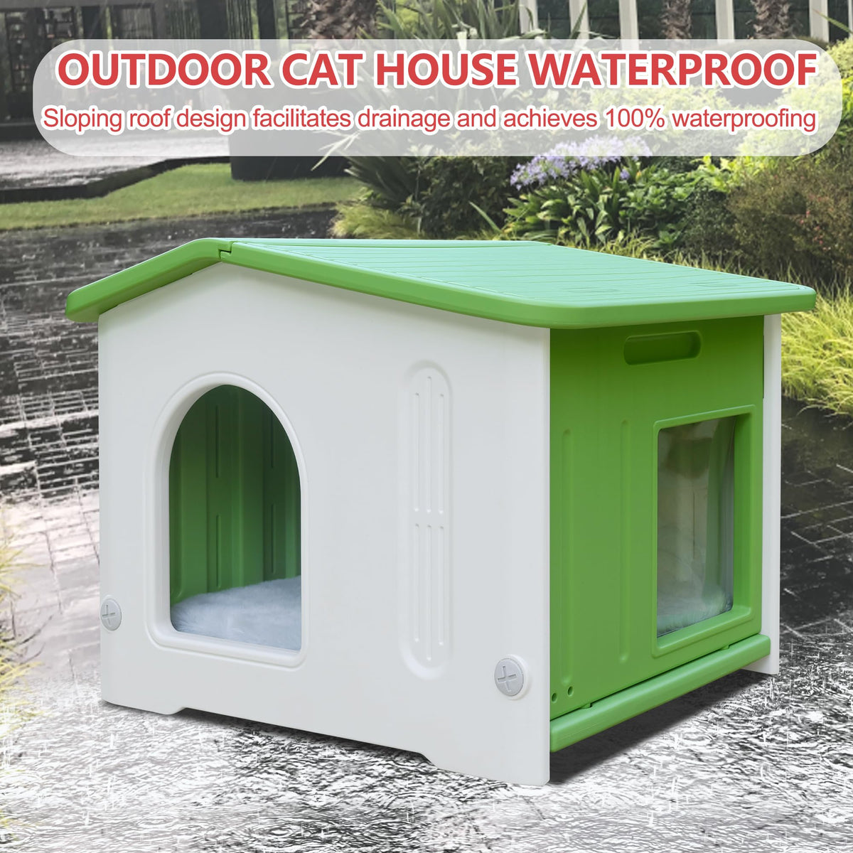 Csqoo Waterproof Outdoor Cat House With Escape Door, Plastic Cat House For Feral Cats Outdoor Cat House With Mat, Sturdy Cat House For Outdoor Cats, Assemble Easily