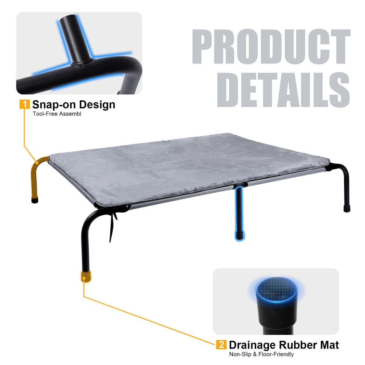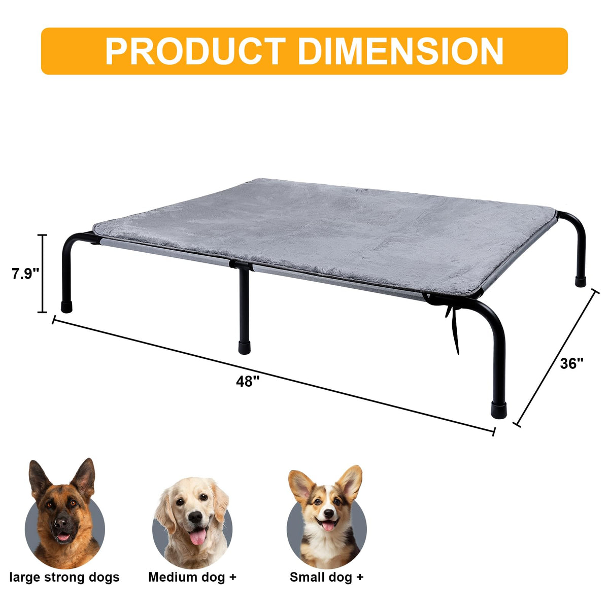 An Elevated Dog Bed Provides Your Pet With A Comfortable Place To Rest, Making Their Every Day Happier. The Included Plush Pad Is More Suitable For Winter Use, Allowing Your Pet To Spend A Warm Winter Comfortably. The Plush Pad Is Washable, So You Don'T Have To Worry About Cleaning. The Additional Support Leg Design Makes The Outdoor Dog Bed'S Load-Bearing Capacity Stronger And More Stable. The Maximum Load-Bearing Capacity Can Reach 150 Pounds, Which Is Suitable For All Kinds Of Large Dogs. The Raised Dog Bed Frame Can Lift Your Pet More Than 7.5 Inches Off The Ground, Allowing Air To Flow Freely On All Sides And Underneath To Keep Your Pet Cool. In Addition, The Cooling Dog Bed Can Reduce The Pressure On Your Pet'S Joints, Keeping Your Pet Cool And Staying Away From Hard Surfaces. The Newly Designed Dog Cot Bed Allows Your Dog To Have A Comfortable Place To Rest. Outdoor Pet Bed Can Be Used Indoors And Outdoors. It Can Also Be Taken With You For Travel, Camping, Etc. Why Choose Us 1. The Dog Elevated Bed Is Easy To Assemble, Disassemble, And Carry 2. Comes With A Plush Pad, More Suitable For Winter 3. Sturdy Metal Frame, Load-Bearing Up To 150 Pounds 4. Breathable Oxford Cloth 5. Lift Pets 7.5 Inches Off The Ground To Keep Pets Clean And Cool On Rainy Or Hot Days. 6. Lightweight, Easy To Move And Carry, Can Be Used Indoors And Outdoors.