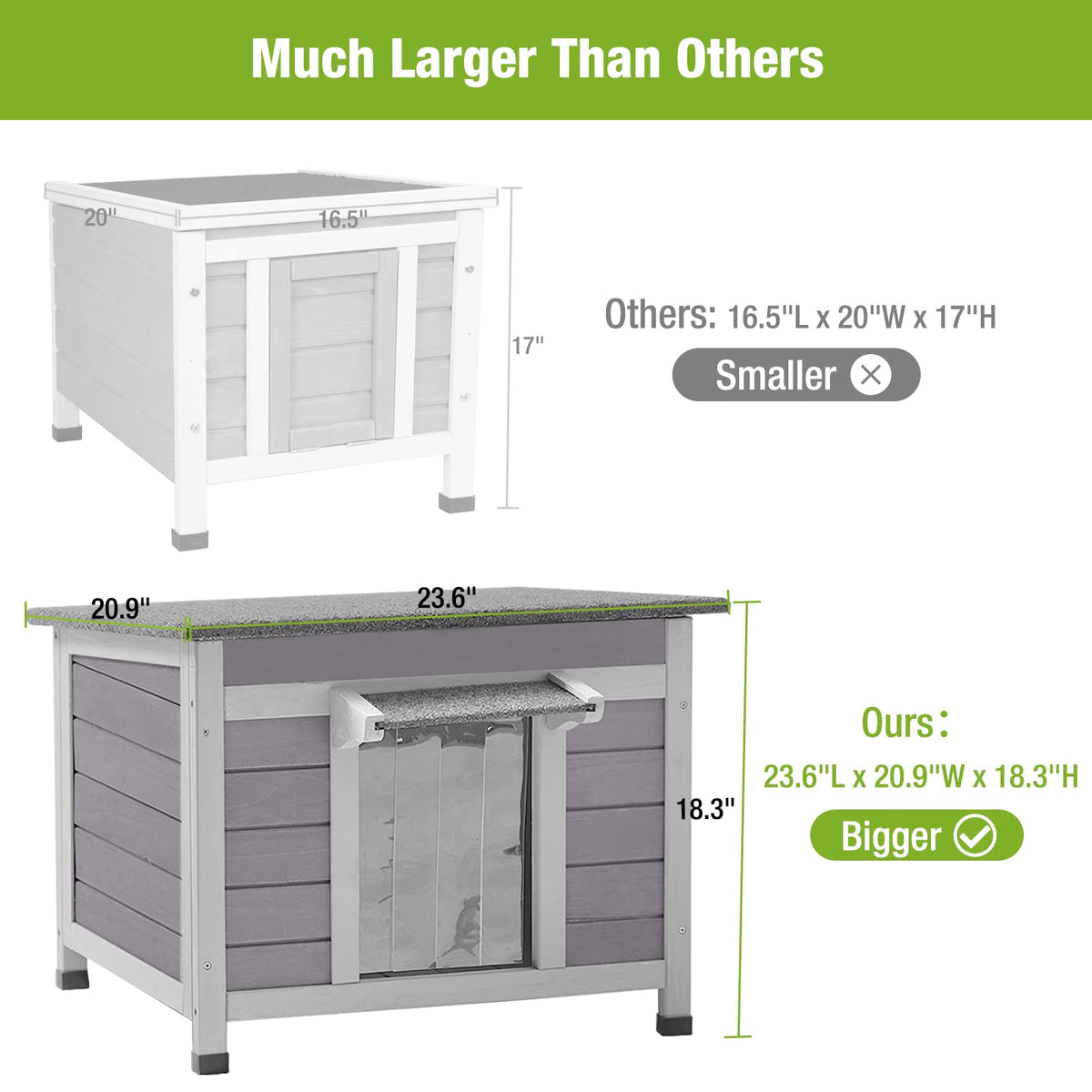 Outdoor Feral Cat House Weatherproof, Small Wooden Rabbit Hutch Bunny Cage Indoor-Pvc Door Flaps