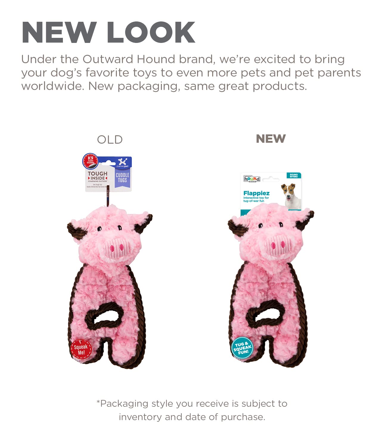 Outward Hound's line of Cuddle Tugs dog toys are the perfect all around pal for your pup. The soft textured corduroy material is soft on your dog's gums and comes stuffed with crinkle paper and 2 squeaker pads for a stimulating experience. Cuddle Tugs dog toys are designed to be used in interactive play games such as tug of war and extend out to 26 inches. Made with K9 Tuff Guard material featuring denier canvas lining, nylon-fused backing, and double stitched seams for more durability. Your dog will adore curling up with one of the sweet plush characters after a long day of play. SAFETY AND CARE: When choosing a toy, make sure to choose an appropriate size toy for your dog. No toy is indestructible. ALWAYS supervise your dog when using a toy of any kind. Inspect toys regularly for damage and remove and replace if broken, or if parts become separated, as serious injury may result. Intended for dogs only. Keep out of reach of children.