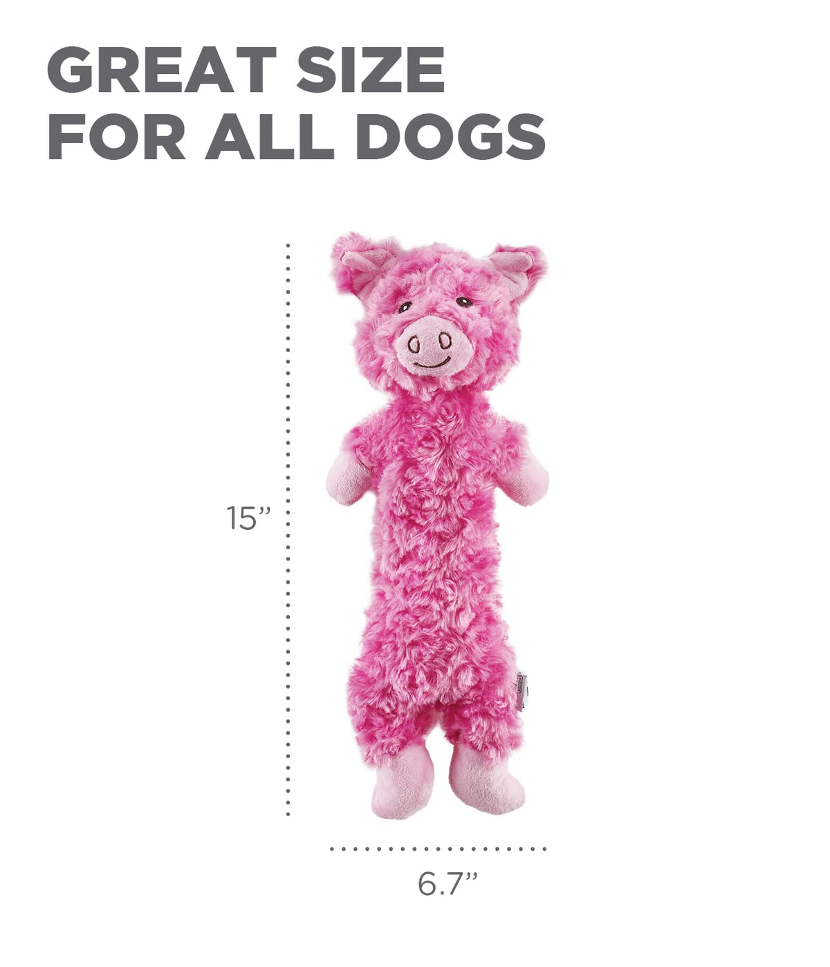 Q: Is the Lil' Dudes Pig toy suitable for all dog sizes?A: While the Lil' Dudes Pig Toy is designed to be a fun and engaging option for dogs of all sizes and breeds, it is important to choose an appropriate size toy based on your dog's size and play style. Supervision during play is recommended, as this toy is not indestructible.