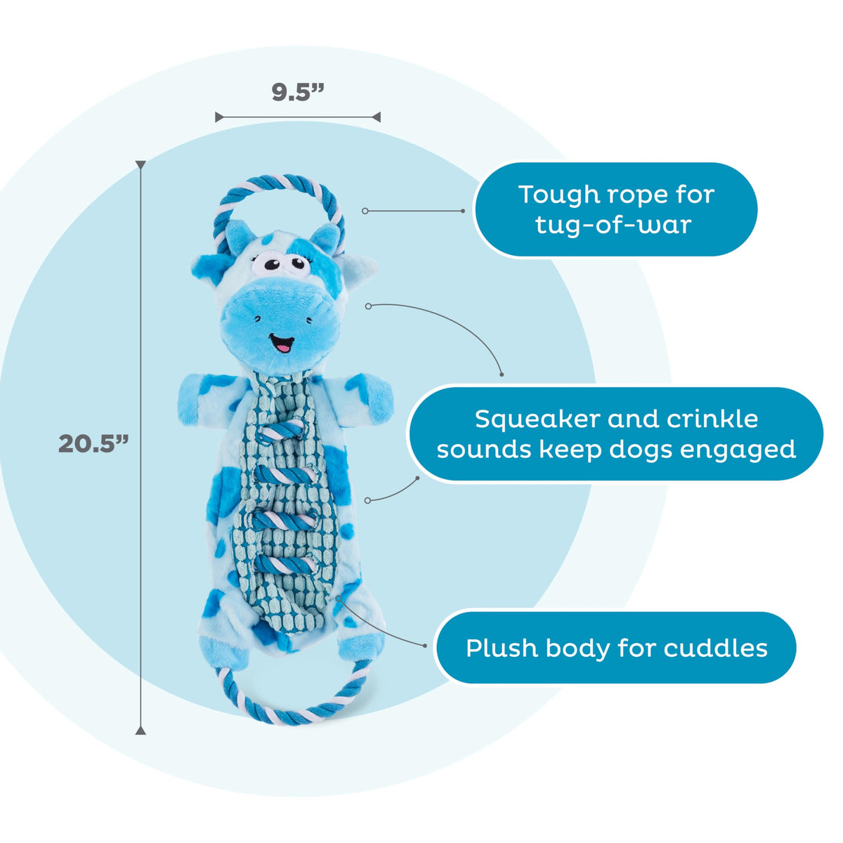 Outward Hound By Charming Pet Ropiez Rope Interactive Dog Tug Toy For Tugging Squeaky Fun, Cow, Blue