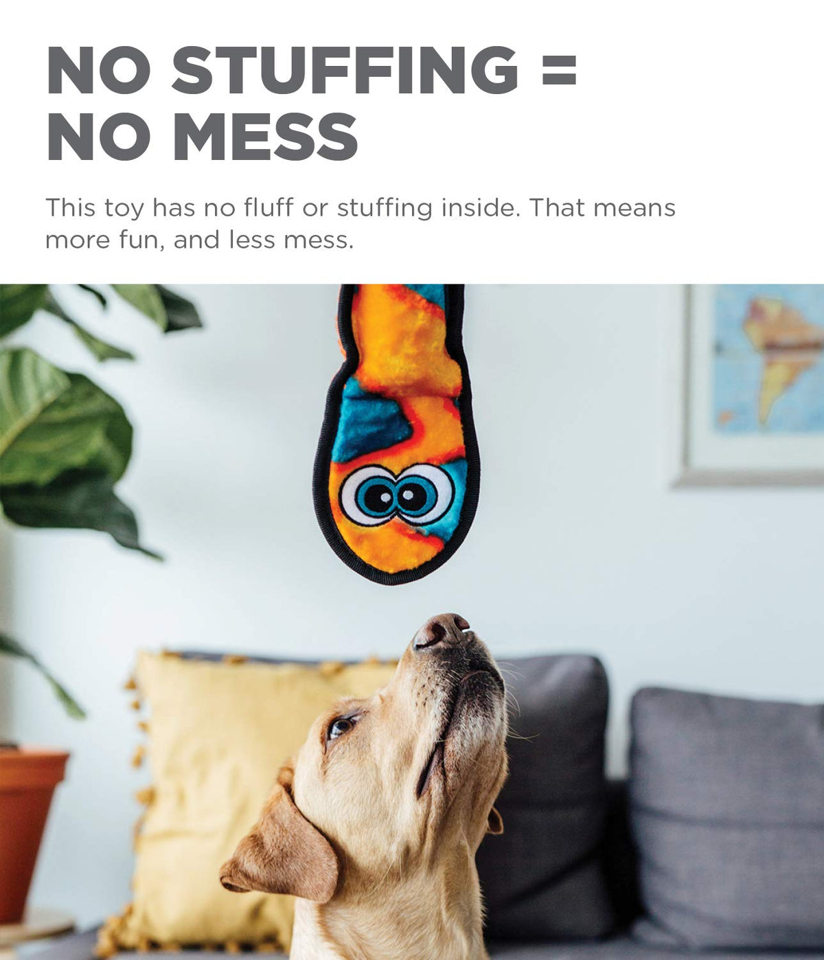 As cute as they are tough, Outward Hound's Durablez longer-lasting plush dog toys are the ultimate combination of cuddly plush and durability to keep your dog entertained. Though colorful and cute, don't let the plush toy exterior fool you. Built to withstand enthusiastic play sessions, each Durablez dog toy is made from Outward Hound's signature K-9 TUFF GUARD complete with strong binding and a tough interior layer of material. This gives the benefit of extended play wrapped in comforting plush dogs simply can't get enough of. Dogs can fetch, toss, and play with their Durablez toys and when the playtime is over, Durablez make the perfect cuddle companions. Durablez dog toys are stuffing-free for all the fun without the clean-up headache, and the irresistible squeakers inside add an extra layer of excitement. The longer the toy, the more squeakers there are, ensuring an engaging experience for your furry friend. Durablez come in various shapes and sizes to suit different dogs, activity levels, and squeaker toy preferences. Next time you're torn between a plush and a durable dog toy, choose the best of both worlds – grab a Durablez longer-lasting dog toy and keep your dog's tail wagging. WARNING:For dogs only. Product contains one continuous thread to enhance durability. If thread unravels, please discontinue use. Keep out of reach of children. When choosing a toy, make sure to choose an appropriate size toy for your dog. No toy is indestructible. ALWAYS supervise your dog when using a toy of any kind. Inspect toys regularly for damage and remove and replace if broken, or if parts become separated, as serious injury may result.