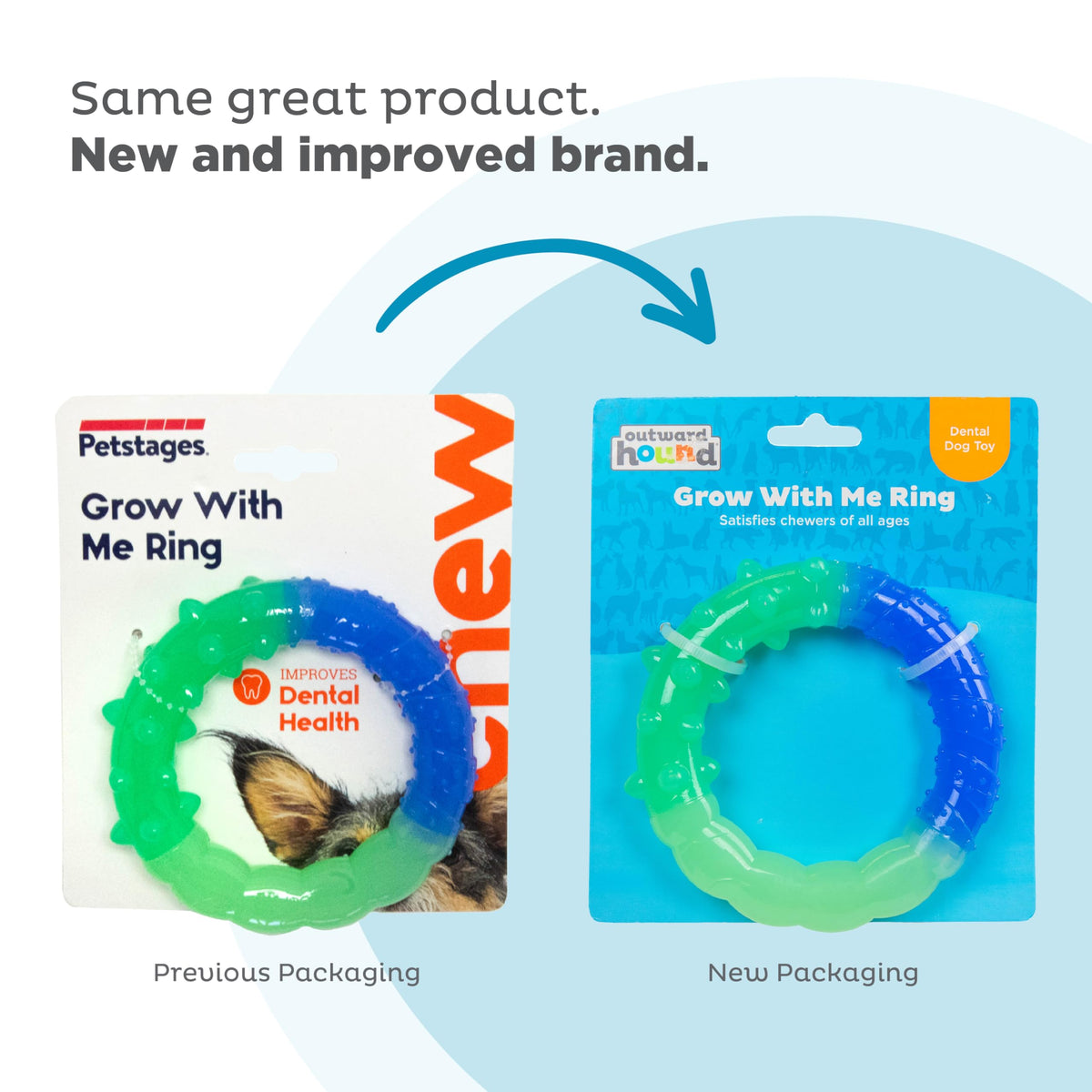 Outward Hound'S Grow-With-Me Ring Is The Ideal Chewing Toy For Your Growing Puppy Or Small Breed Dog! Made With Orka Rubber Material That Is Strong, Yet Gentle Enough On Teeth And Gums, This Chew Toy Satisfies Your Pup'S Instinctual Needs To Gnaw And Bite As They Go Through The Teething Process And Beyond With Three Types Of Textures. Feel Free To Toss This Multi-Colored Chew Toy Around At The Park Or Pool Because It'S Both Buoyant And Bouncy! Safety & Care: This Is A Non-Edible Play Toy. When Choosing A Toy, Make Sure To Choose An Appropriate Size Toy For Your Dog. As With Any Chew Toy, We Recommend Monitoring Your Dog'S Use And Replacing After Reasonable Wear, No Toy Is Indestructible. Always Supervise Your Dog When Using A Toy Of Any Kind. Remove If Excessive Chewing Occurs Or If Pieces Larger Than A Piece Of Rice Are Chewed Off. Know Your Dogs Chewing Habits, Your Pets Safety Is Your Responsibility. For Dogs Only. Keep Out Of Reach Of Children.